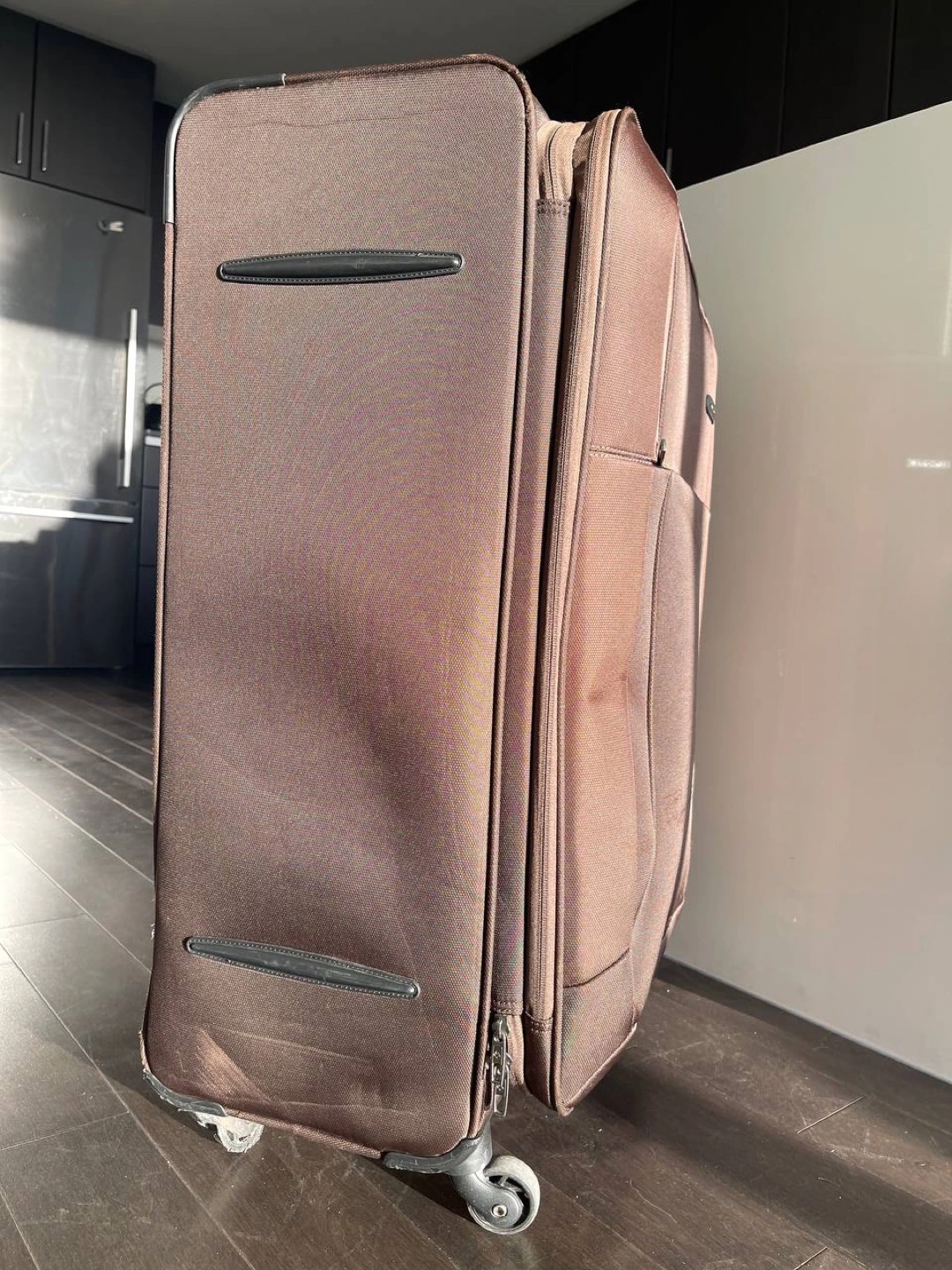 For sale is a Samsonite suitcase in overall good condition, despite having some minor visual defects. While the exterior may show signs of wear and tear, the wheels are in perfect working order, ensuring smooth and effortless mobility. The zipper, although functioning on only one side, remains reliable and securely closes the case. This particular suitcase is equipped with an extender, providing additional space for your belongings, and it also features a sturdy locker to keep your items secure during travel. Despite its cosmetic imperfections, this Samsonite suitcase remains a practical and dependable choice for your journeys.