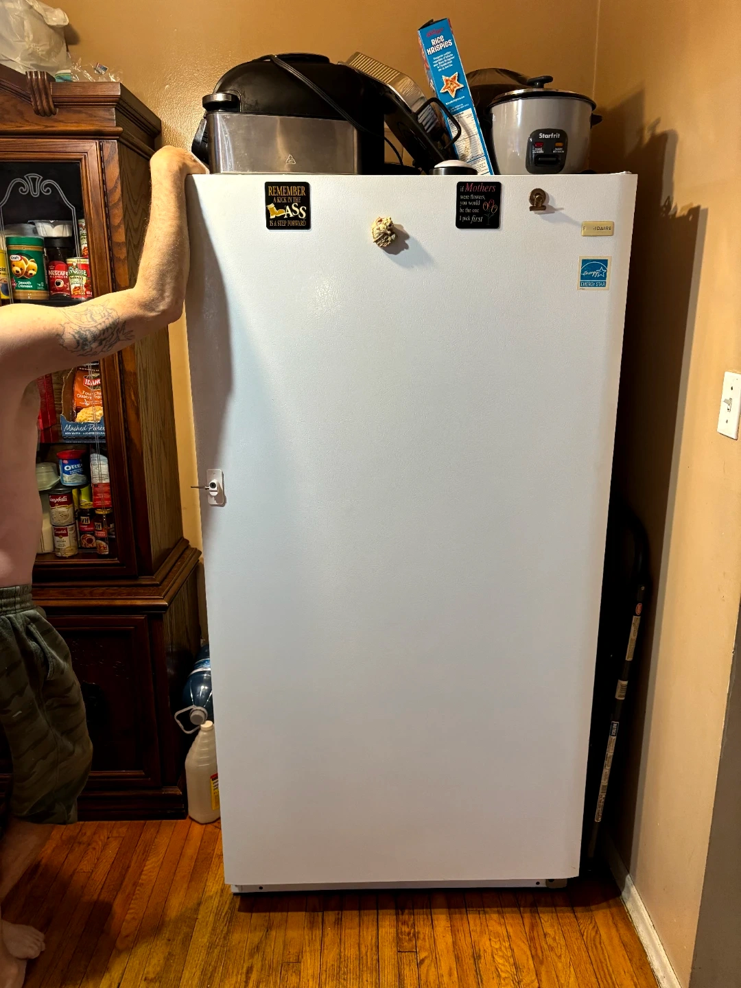 Selling a used upright freezer. It's in good working condition only two people in my family so it's too big for us now