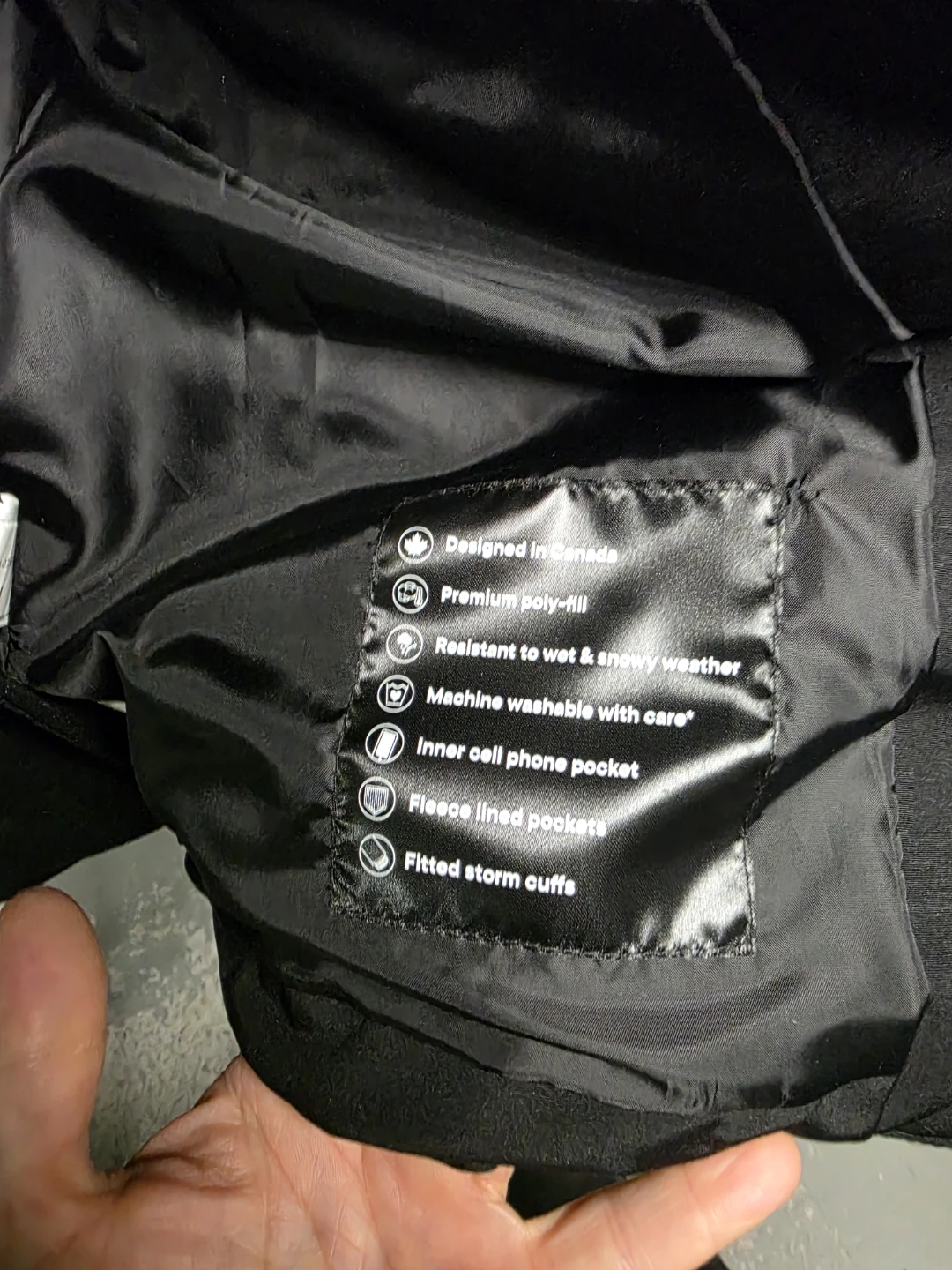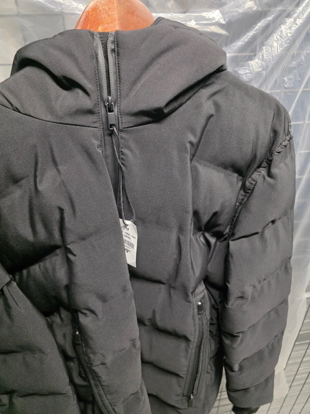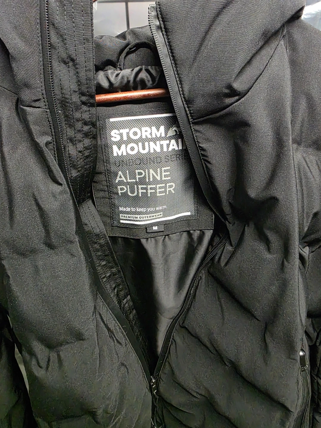 Selling a Man Storm Mountain Alpine Puffer jacket in size medium! It's designed in Canada and features a premium poly-fill, making it resistant to wet and snowy weather. It's also machine washable with care, and has an inner cell phone pocket, fleece lined pockets, and fitted storm cuffs