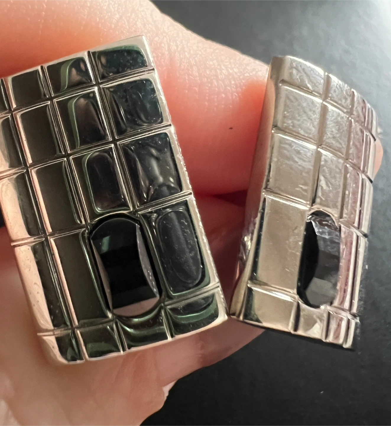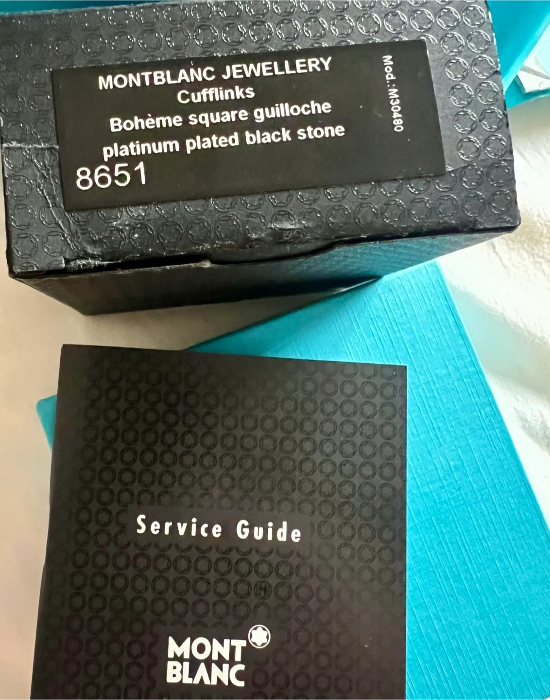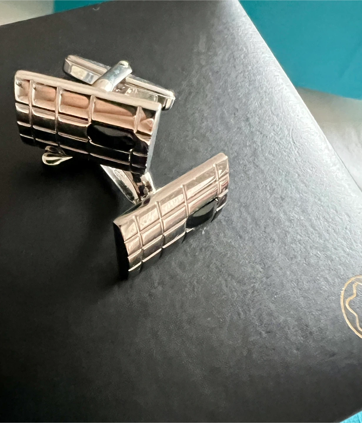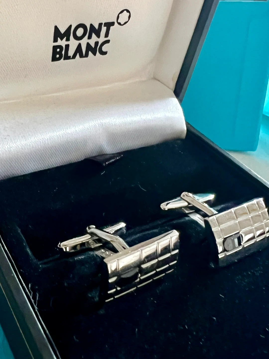 Authentic high-end luxury Montblanc Bohème Square Guilloché cufflinks, purchased from Birks in 2003.