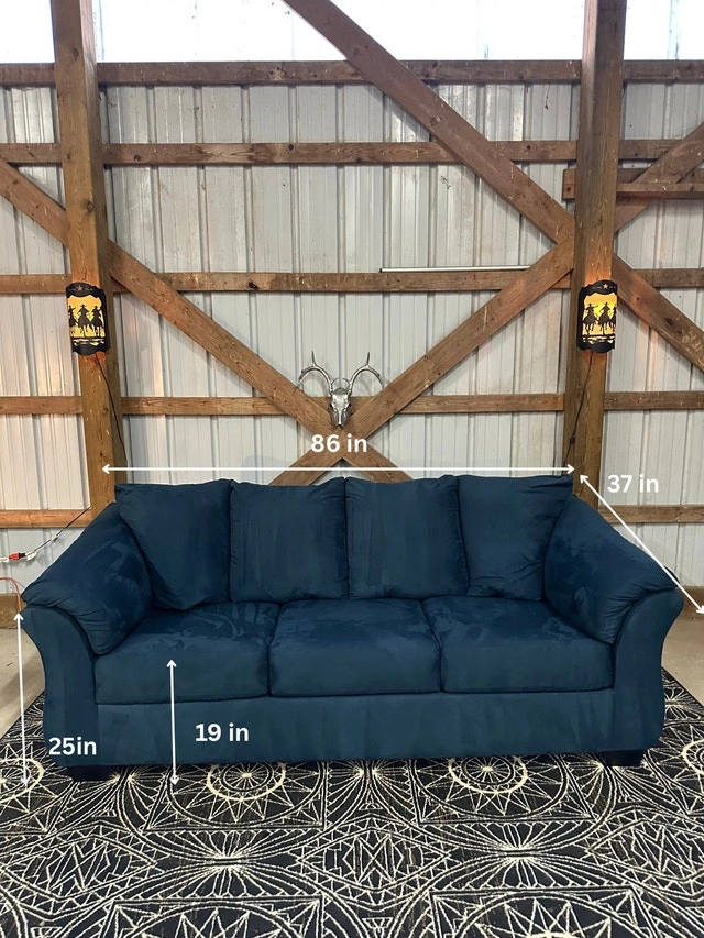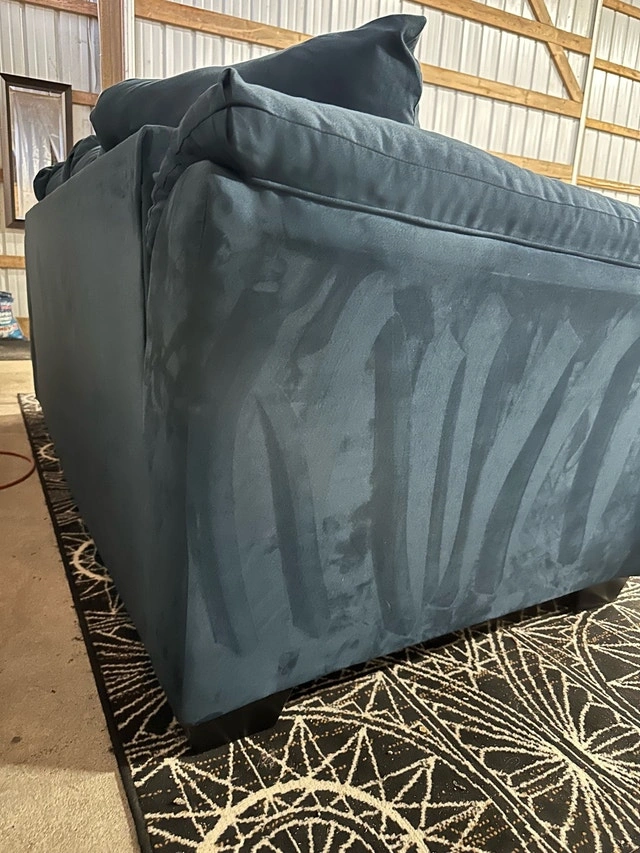 $ 450 Teppermans Microsuede Blue Sofa. ️ Has been professionally shampood and steam cleaned. Info - Removeable bottom cushion covers for easy cleaning. - Barely used the couch is in like new condition. - Strong frame to last for years. - Super comfortable. Dimensions available in photos. Couch and furniture disposal available too. For Sale By: Owner