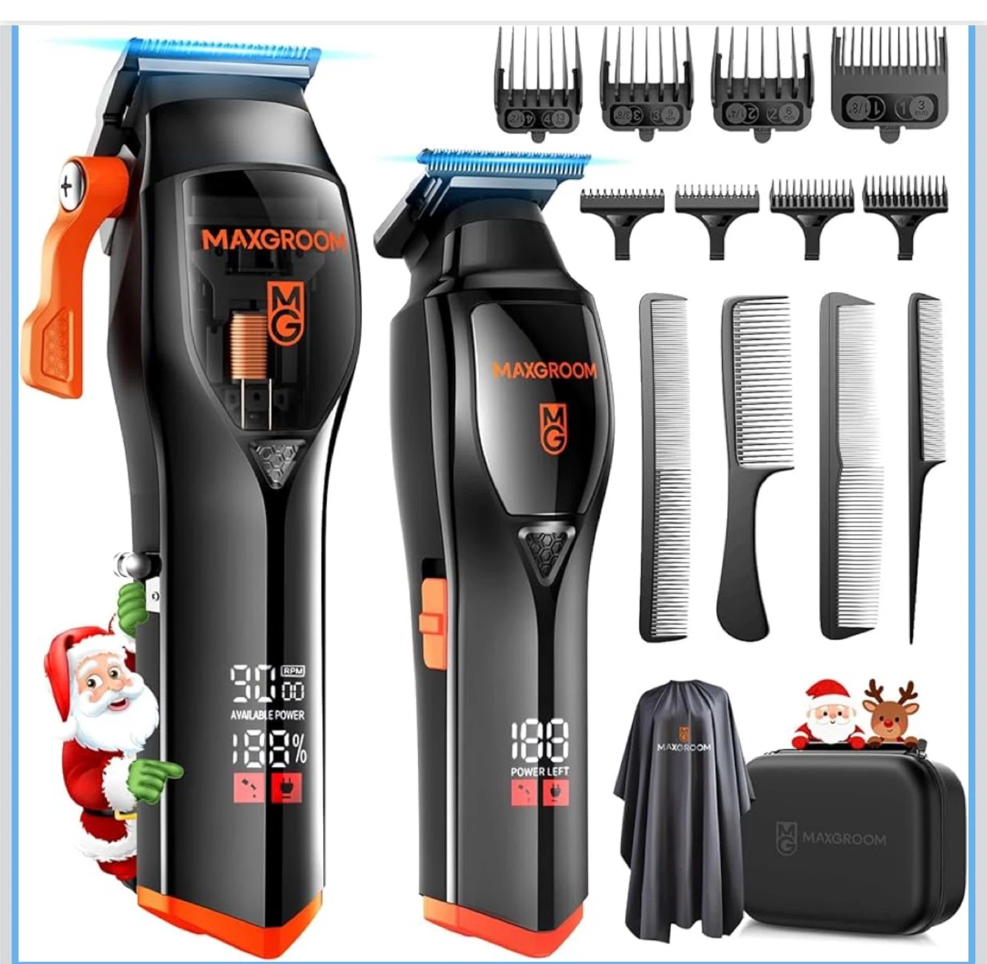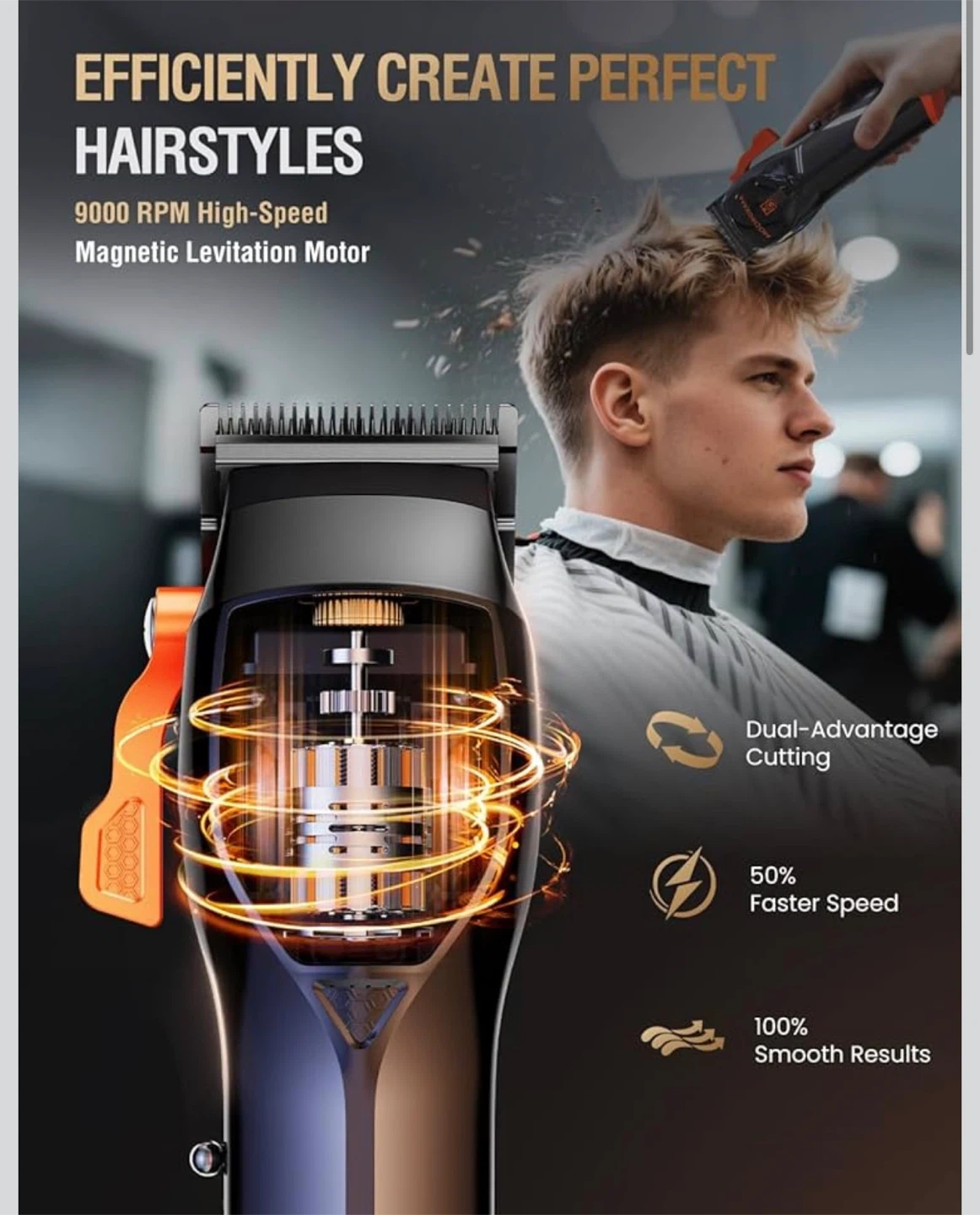 Professional Hair Clippers for Men, 9000 RPM Magnetic Motor, DLC Blades Cordless Hair Cutting Clippers, Beard Trimmer, Haircut Kit, Perfect for Barber Fades, Christmas Gifts for Men