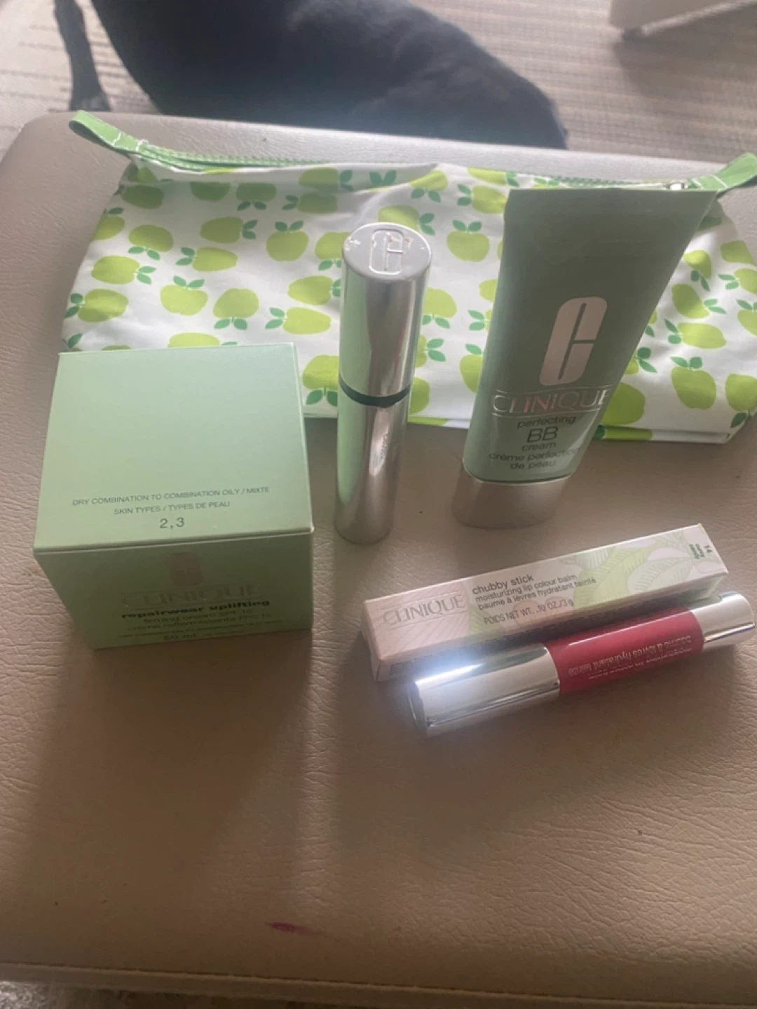 Clinique Repairwear Uplifting Firming Cream SPF 15. It's for dry combination to combination oily/mixte skin types 2,3. The box contains 50 ml of product. It comes with a Clinique Chubby Stick High Impact Mascara and BB cream. Great for your skincare routine!