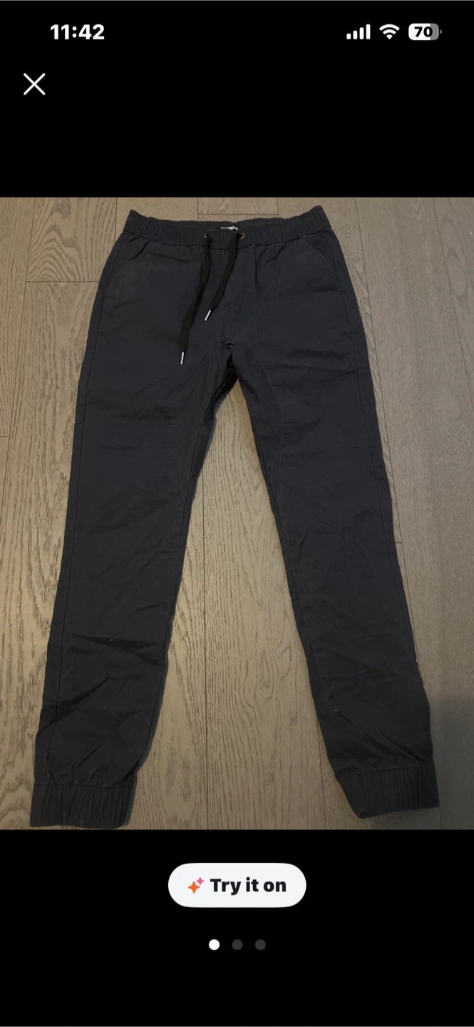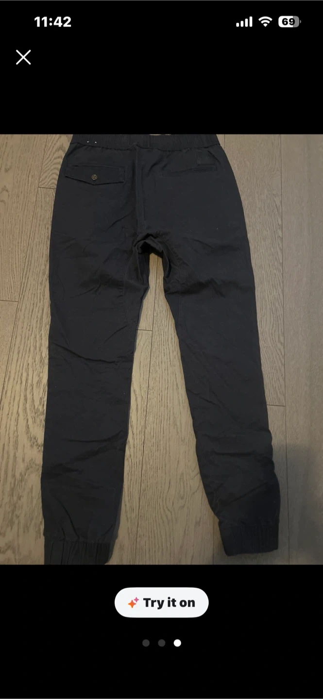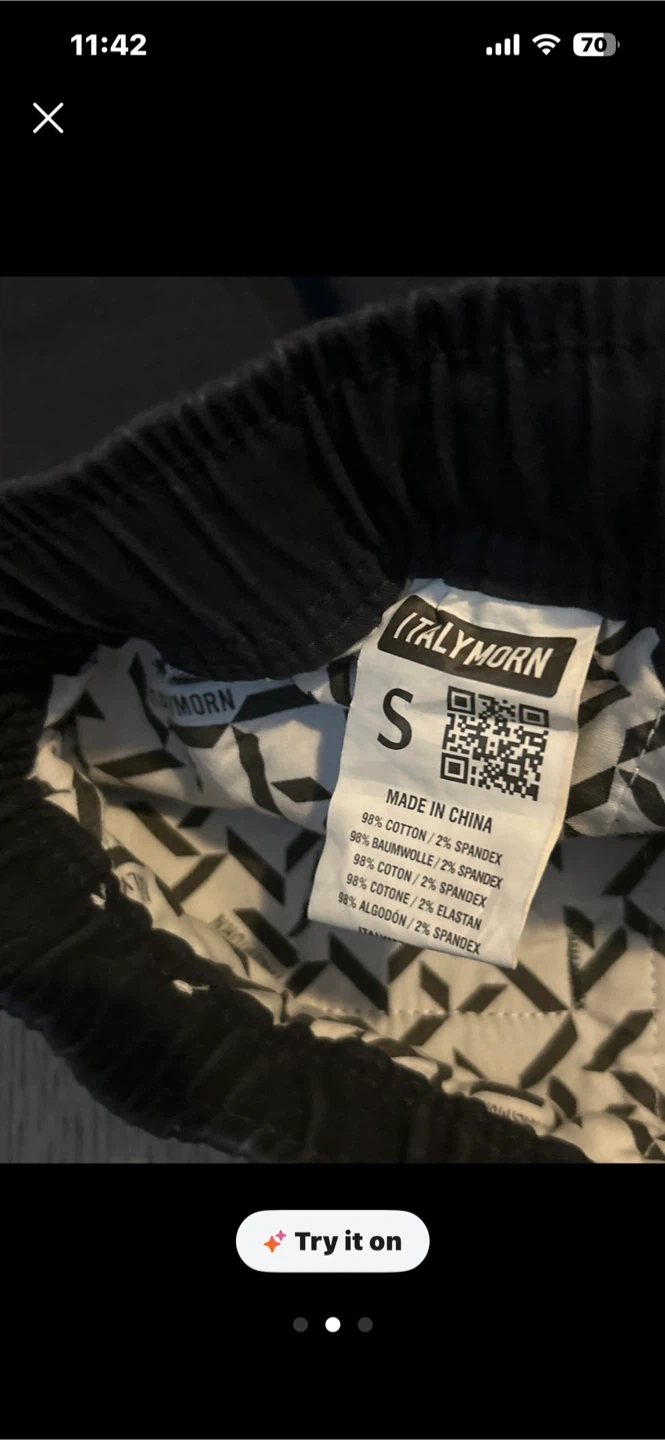 Selling a pair of Italymorn jogger pants in size small. They're black and made of 98% cotton and 2% spandex. Perfect for casual wear!