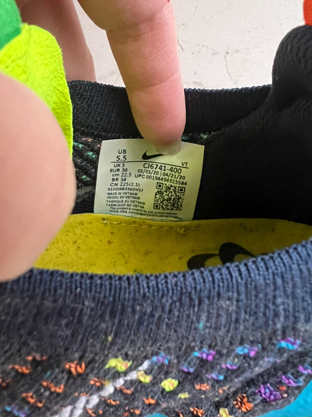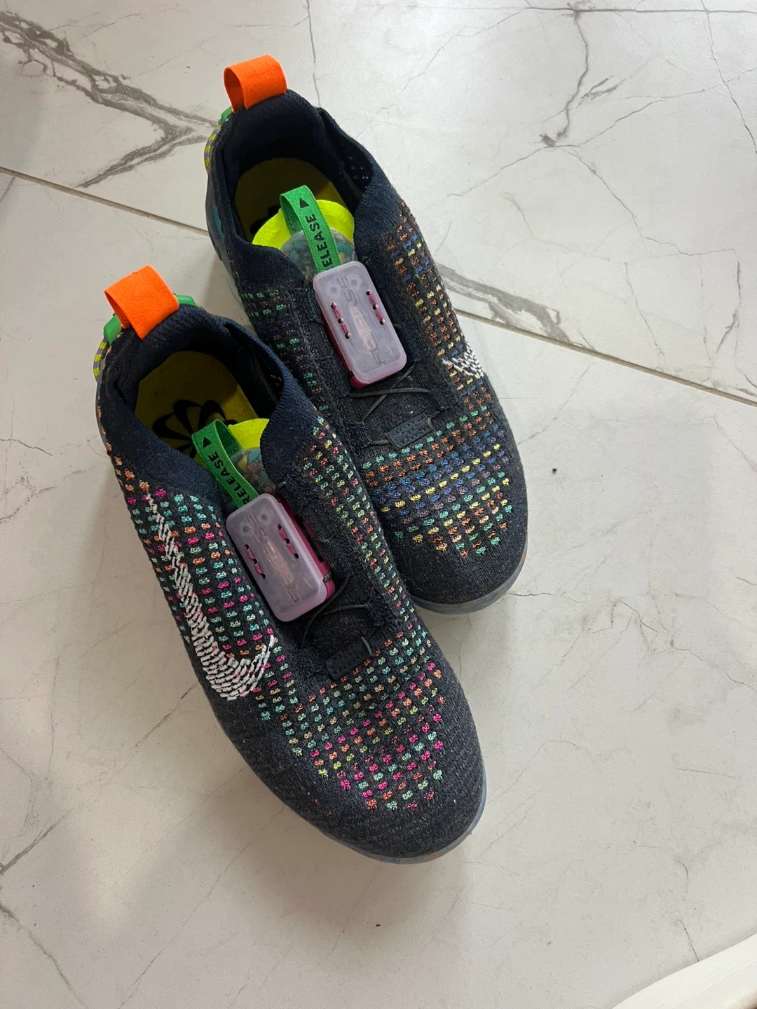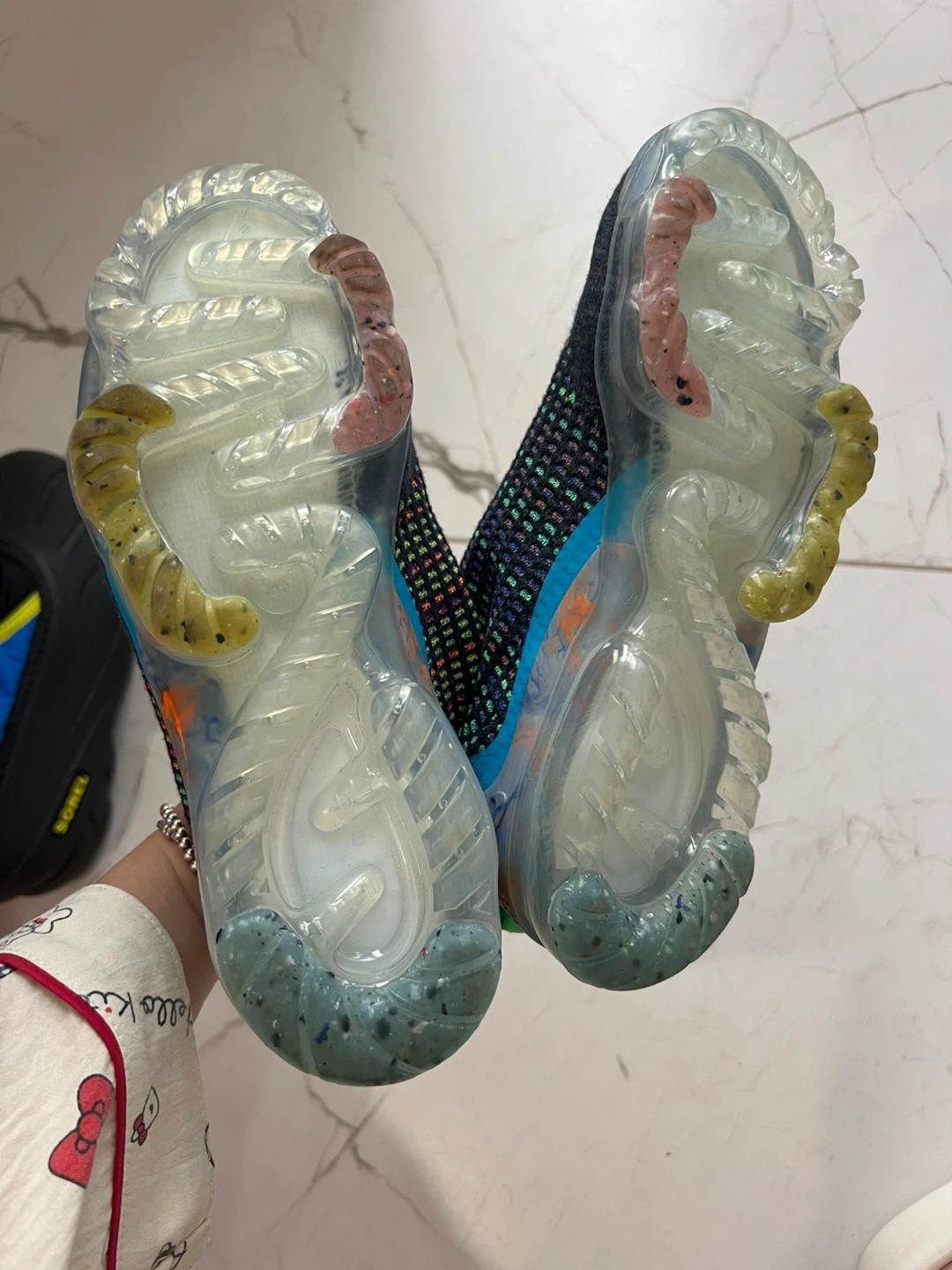 Selling a pair of Nike Air VaporMax 2021 FK shoes! They are a US size 5.5 and have a cool, colourful design. The soles are clear with some interesting details. Perfect for adding a bit of flair to your workout or everyday wear