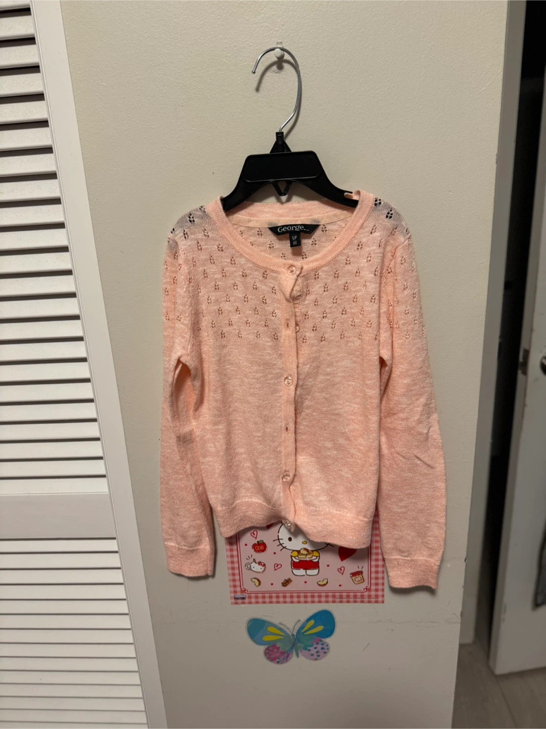 Here's a cute peach-coloured cardigan from George in size S/P (Small/Petite)! It's a lightweight, button-up sweater that would be great for layering. It's in great condition and ready for a new home!