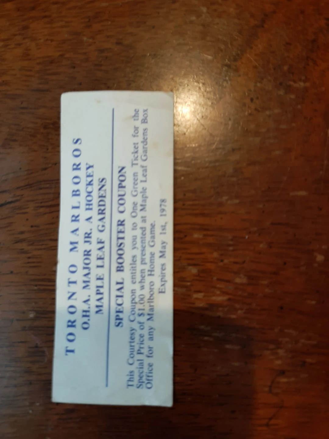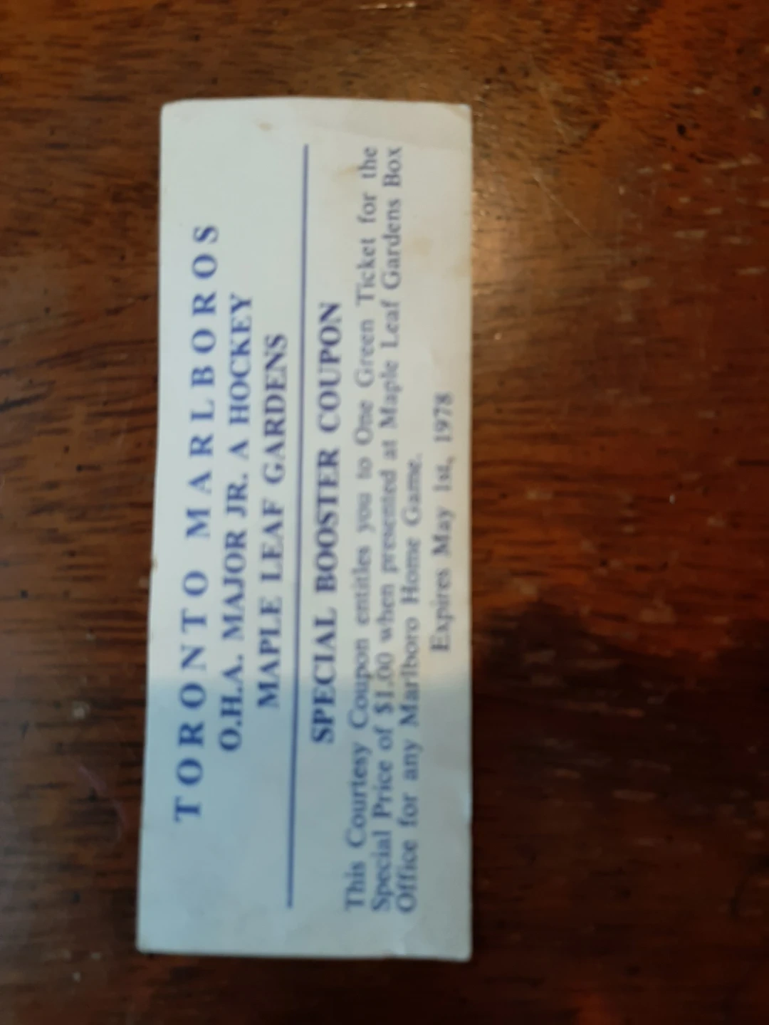 TORONTO MARLIES COUPON FROM 1978. SIGNED BY ED SHACK