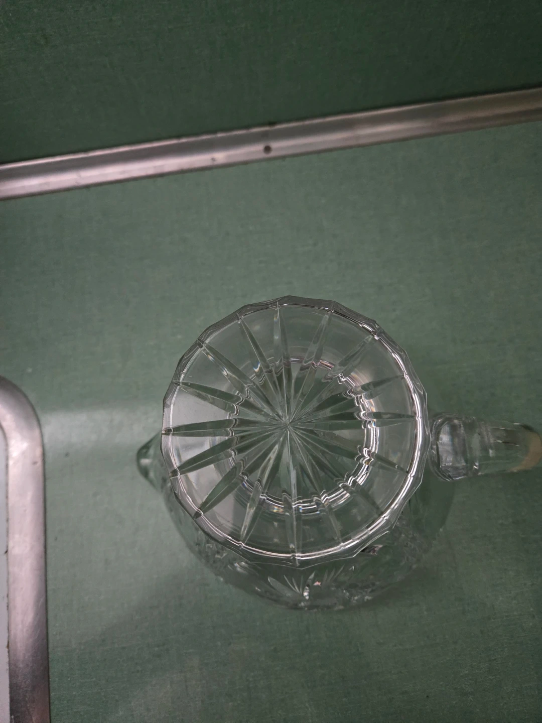 Pitcher measures 5" H to top of handle & 7 3/4" W from spout to handle