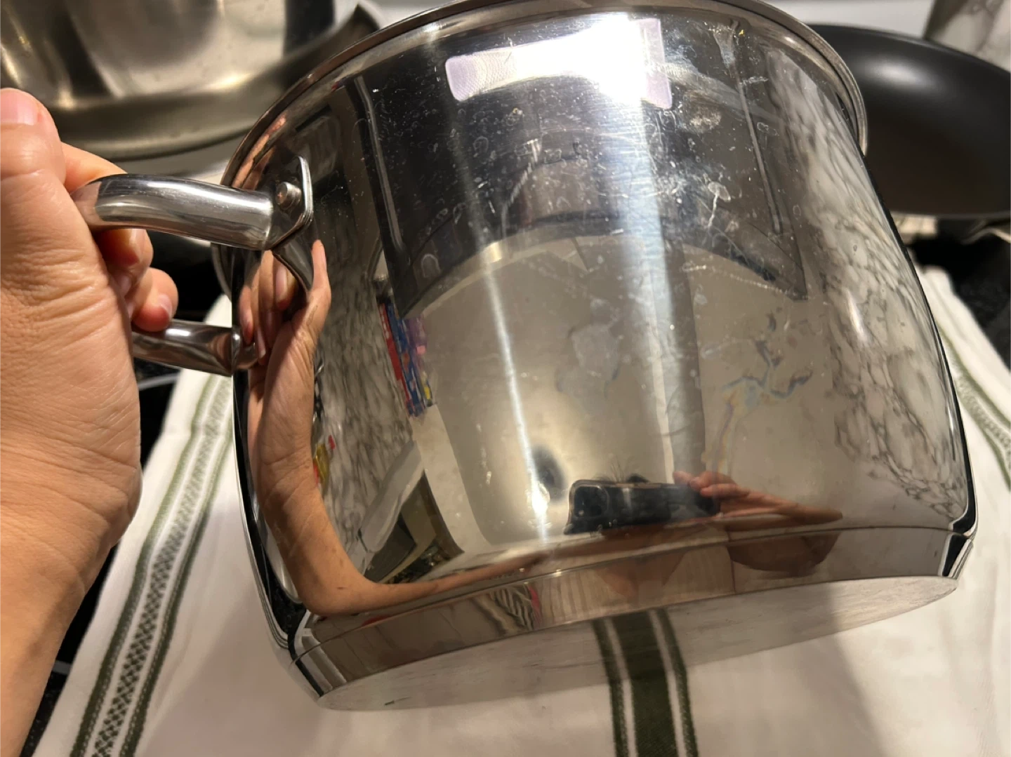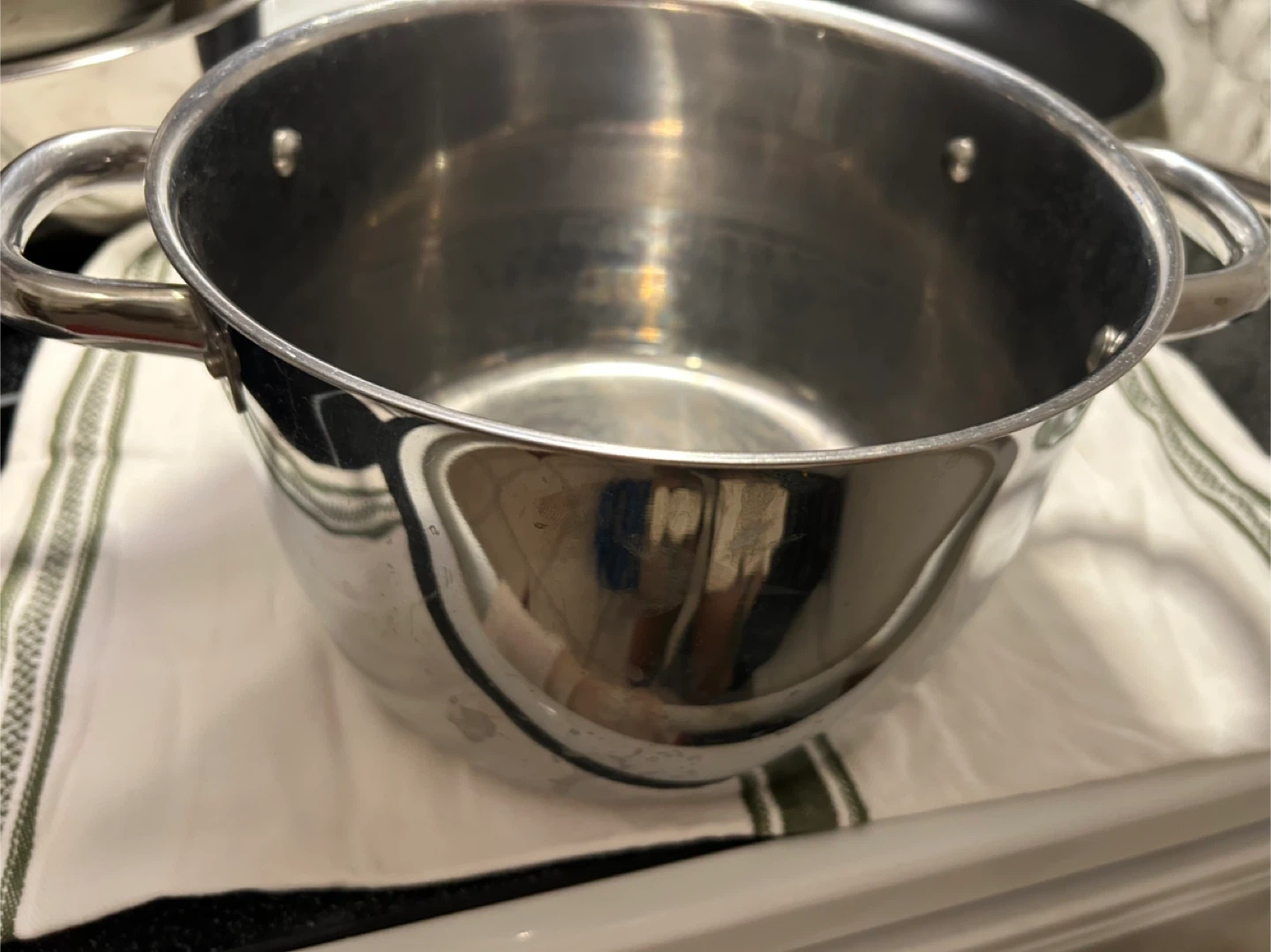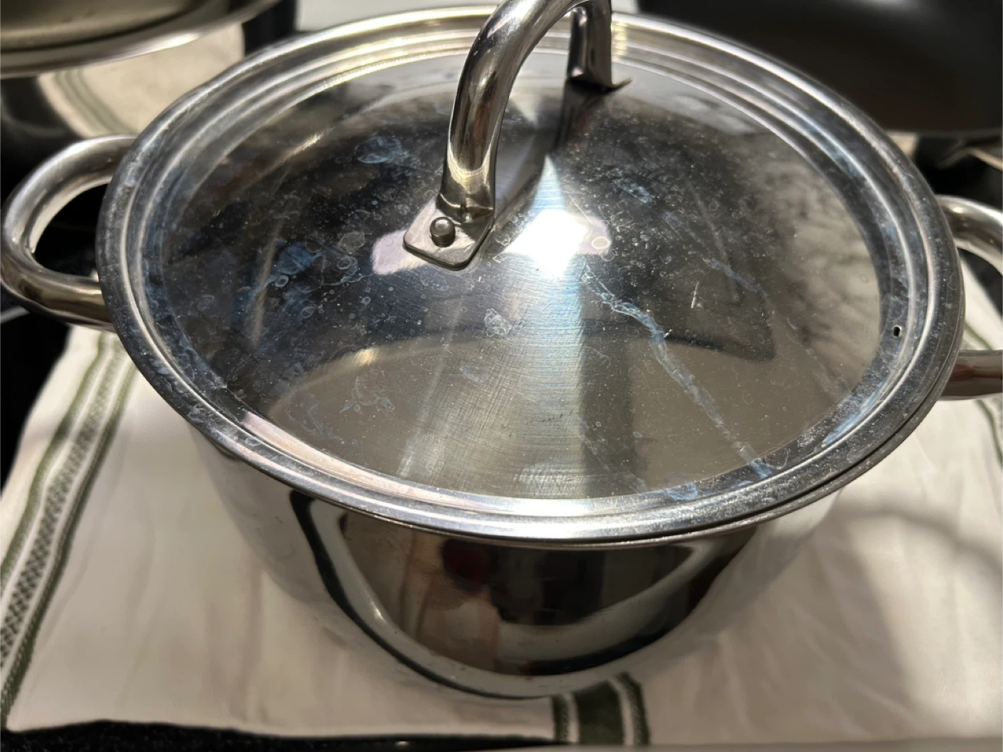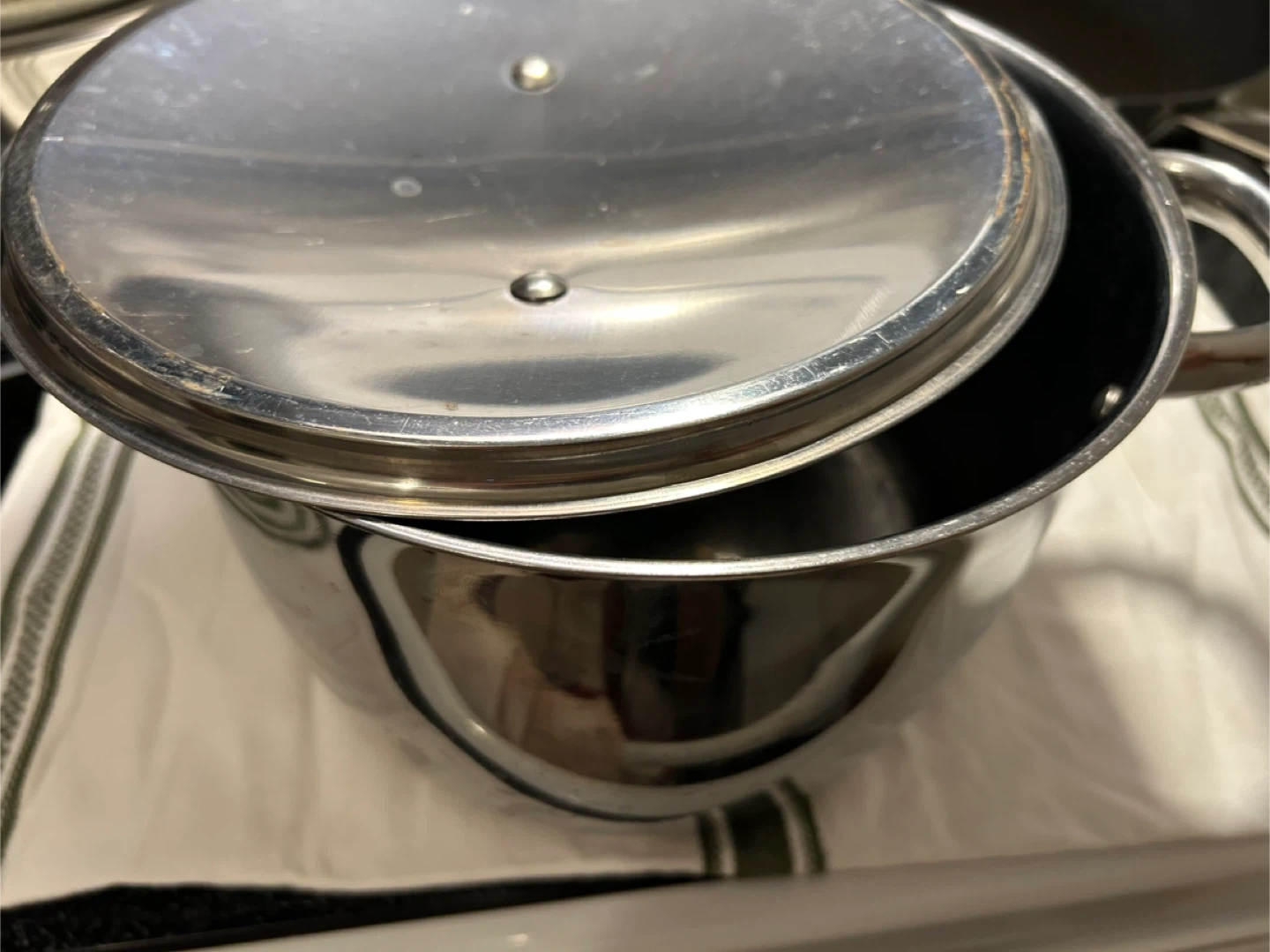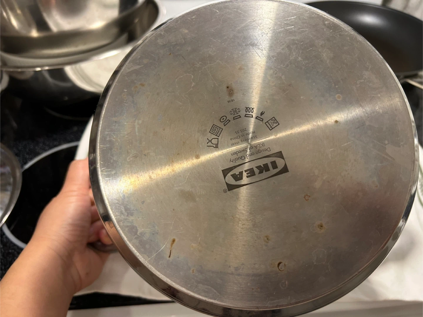 Selling a used IKEA stainless steel stock pot with a lid. It's in good condition and ready for a new kitchen! It has a few signs of use but is otherwise clean and functional.