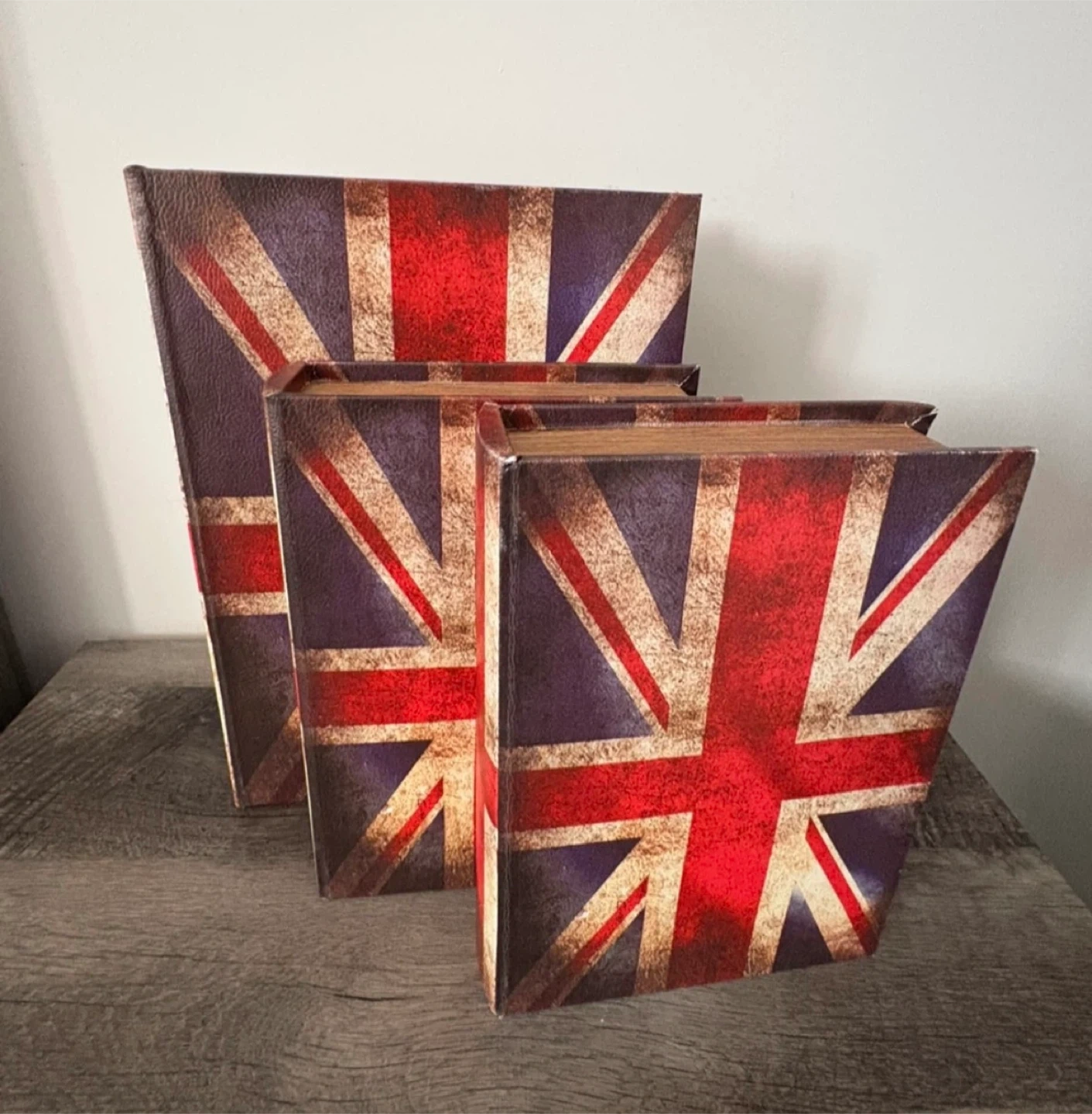 Here's a set of three decorative boxes featuring the Union Jack design! These are perfect for adding a touch of British flair to your home decor. The boxes are in good condition