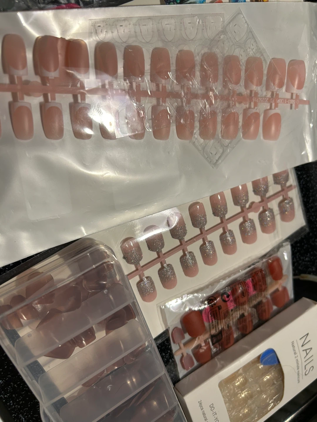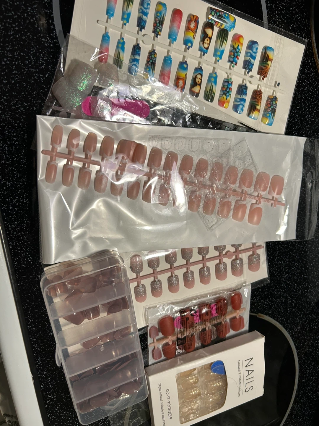 A variety of press on nails for a quick and easy manicure! Includes different colours and designs for any occasion totally 7packs more than 100 nails