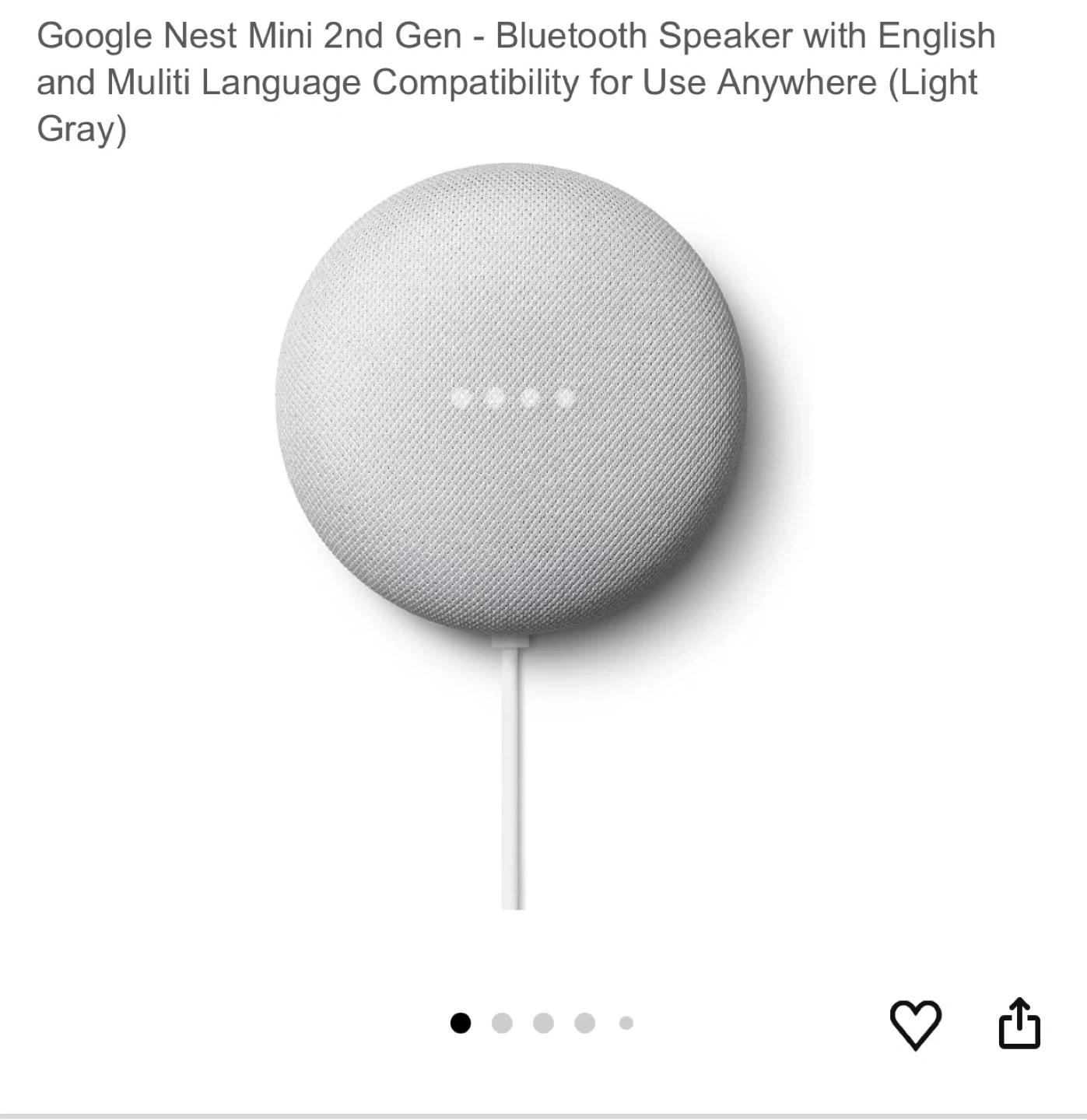 Selling a Google Nest Mini 2nd generation in light gray! It's a Bluetooth speaker with multi-language compatibility, so you can use it anywhere.