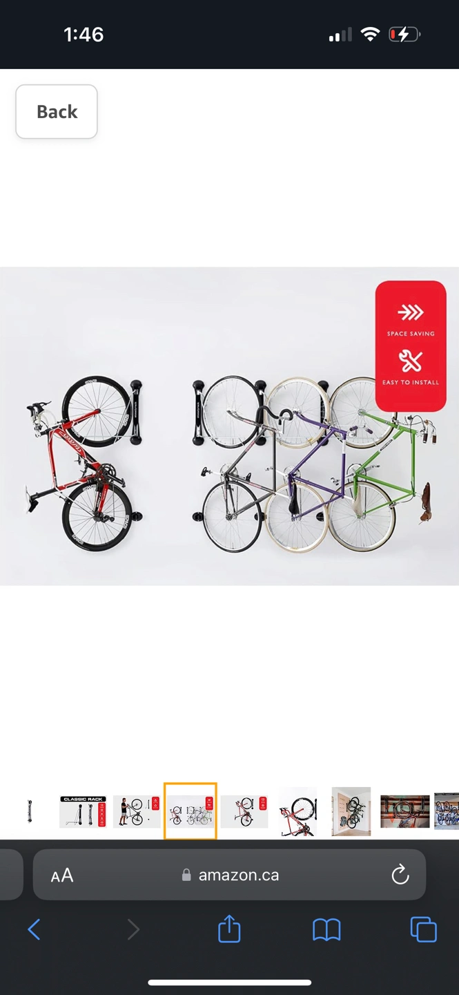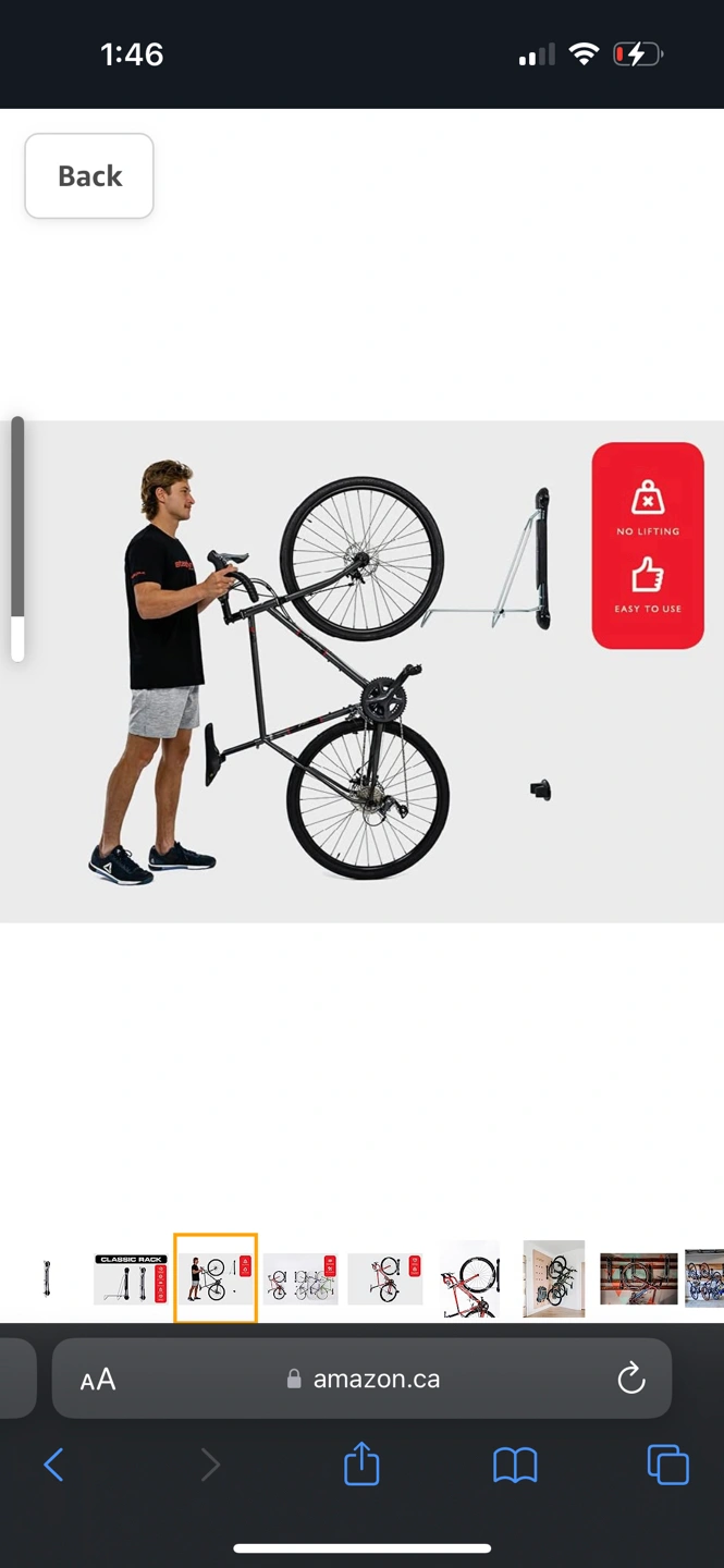 Used but it perfect condition. Well-made product. Works exactly as shown: just roll bike onto the wheel rack and push to the side to save space. Sold my bike and no longer need.