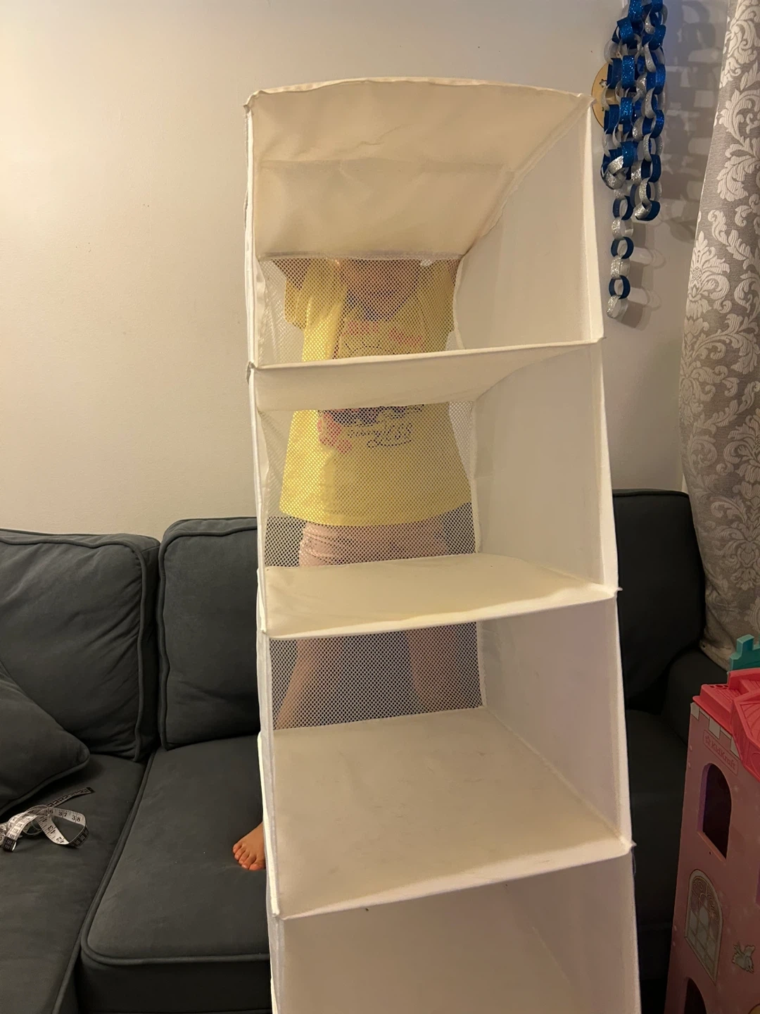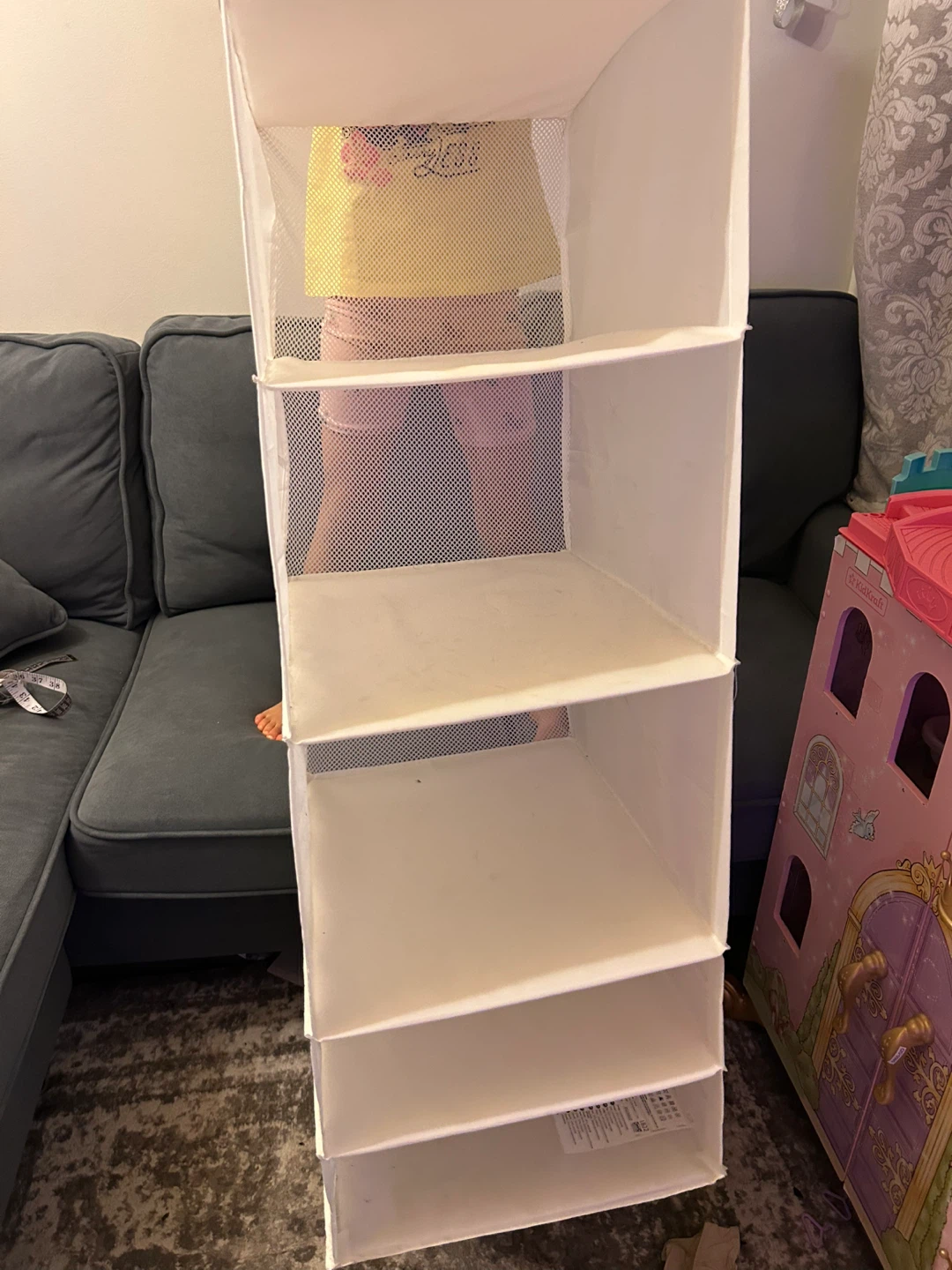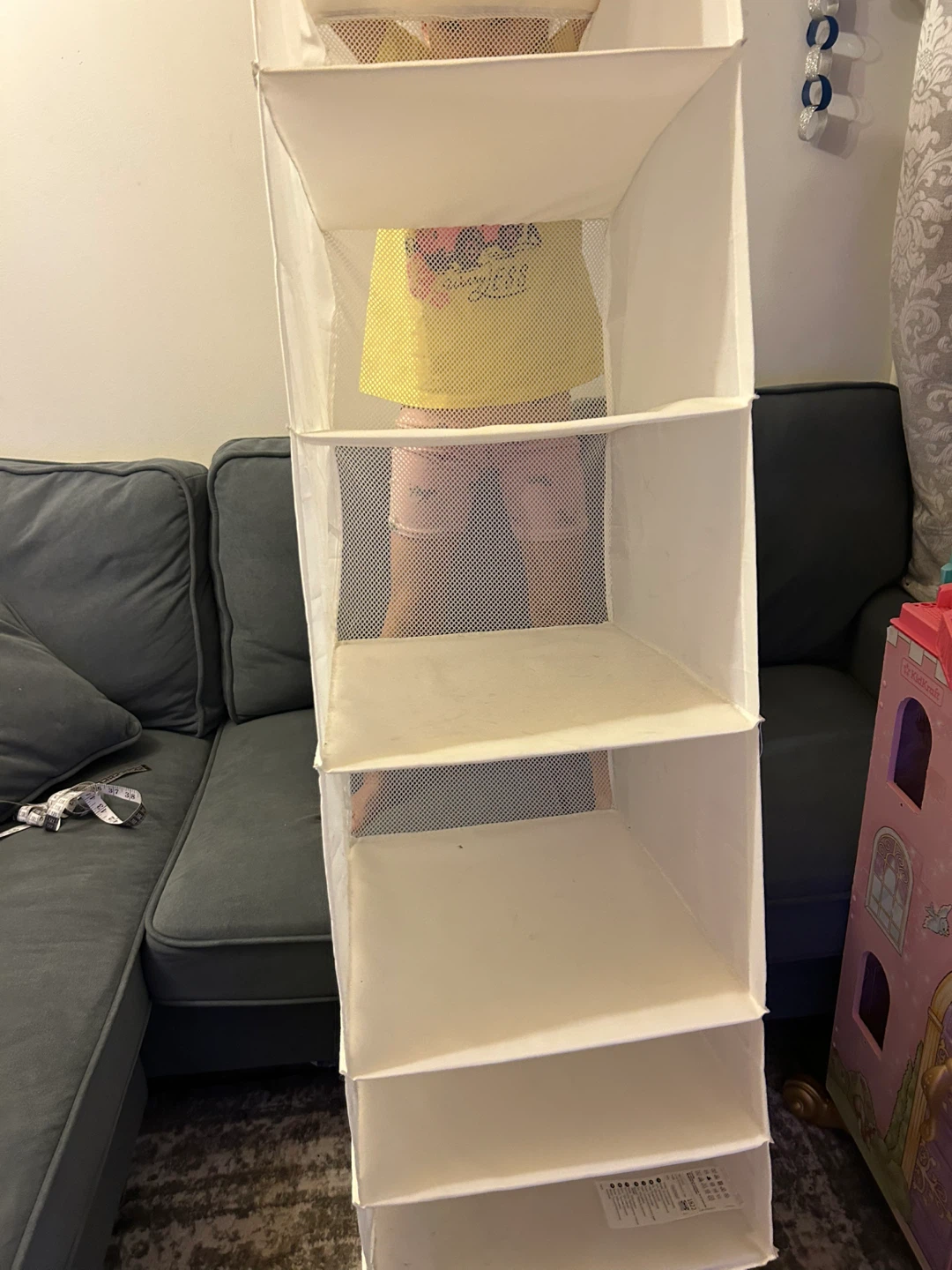 Here's a IKEA white hanging closet organizer to help maximize your closet space! This organizer features multiple shelves, perfect for storing clothes, shoes, or accessories. It's in great condition and ready to use