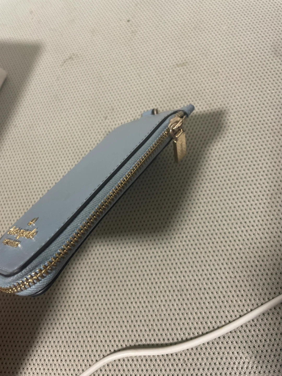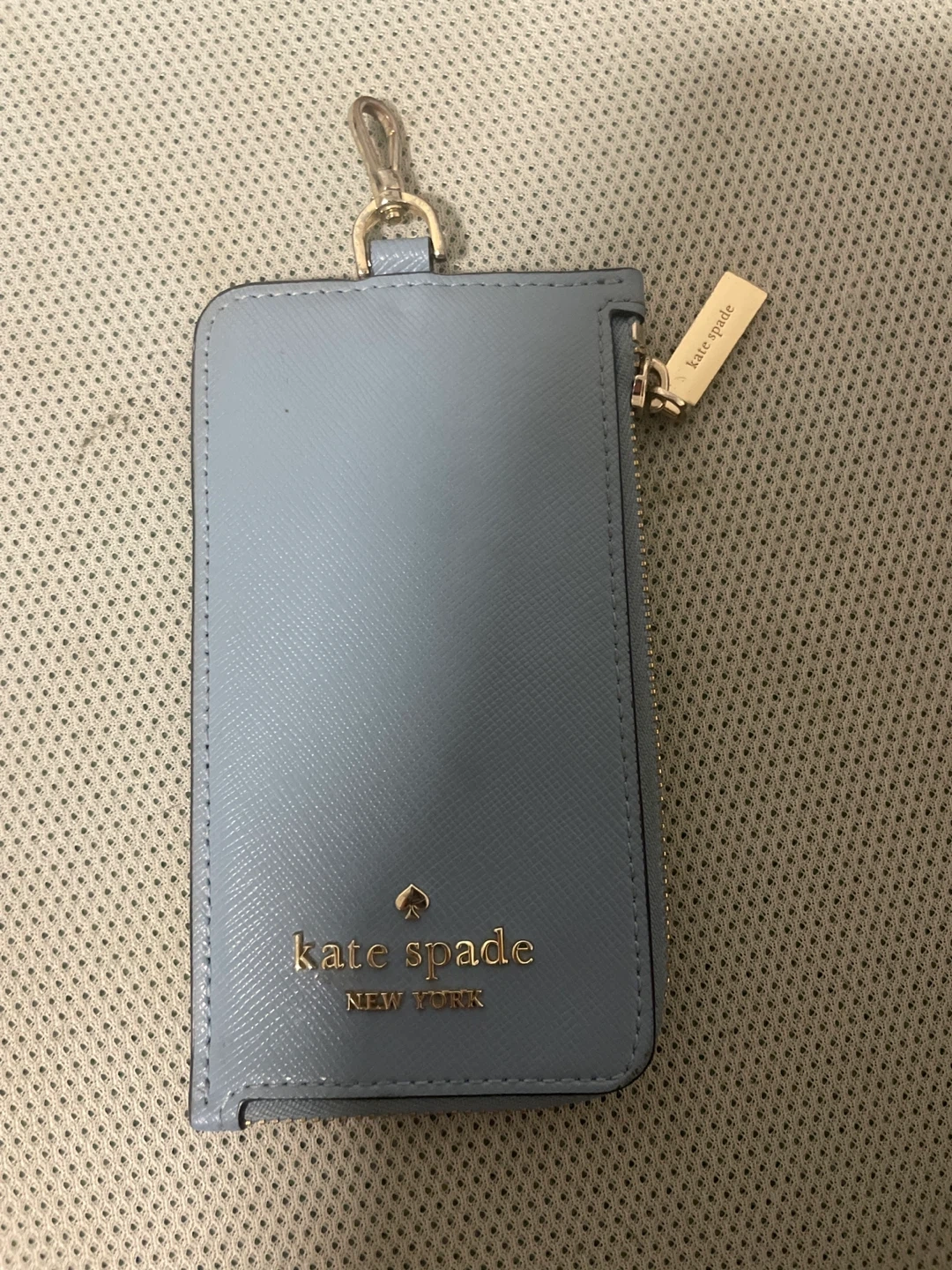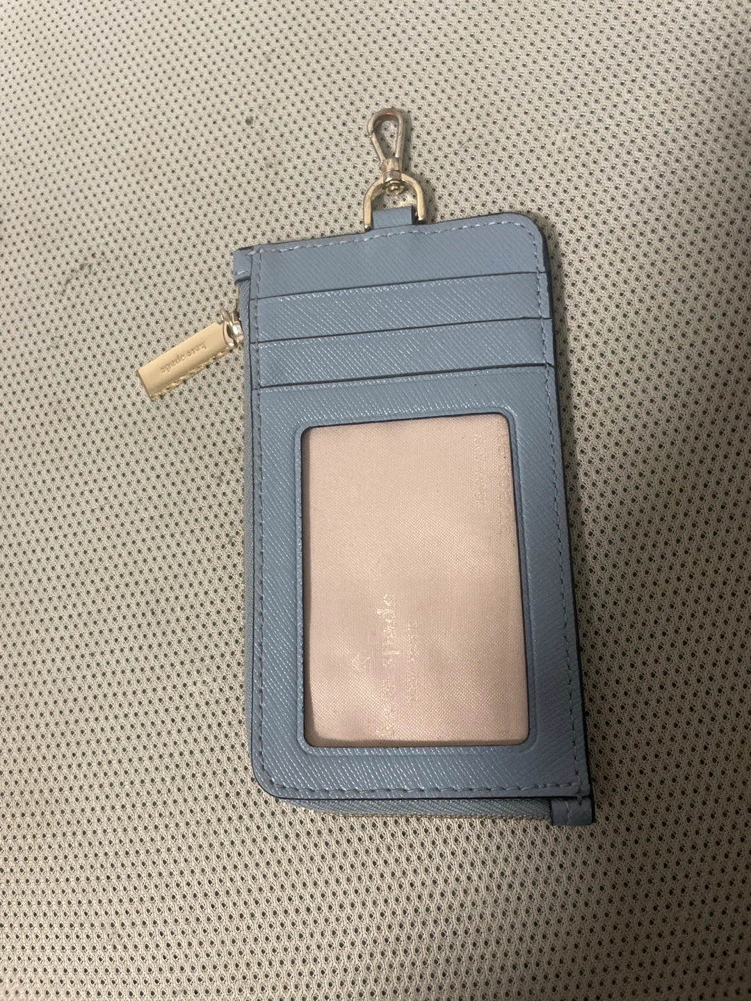 Selling a Kate Spade ID card holder in a lovely blue colour! It's in great condition and perfect for keeping your cards organized. It features a zip compartment and a clear window for your ID. Perfect for everyday use!