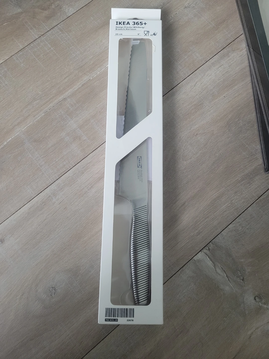 Selling a brand new IKEA 365+ bread knife still in its original packaging! The knife is 23 cm (9") long and made of stainless steel. Perfect for slicing through crusty bread with ease