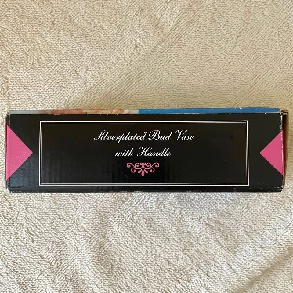 Vintage Silver-Plated Bud Vase with Handle & Gold Bow Accent - Elegant Single Flower Vase