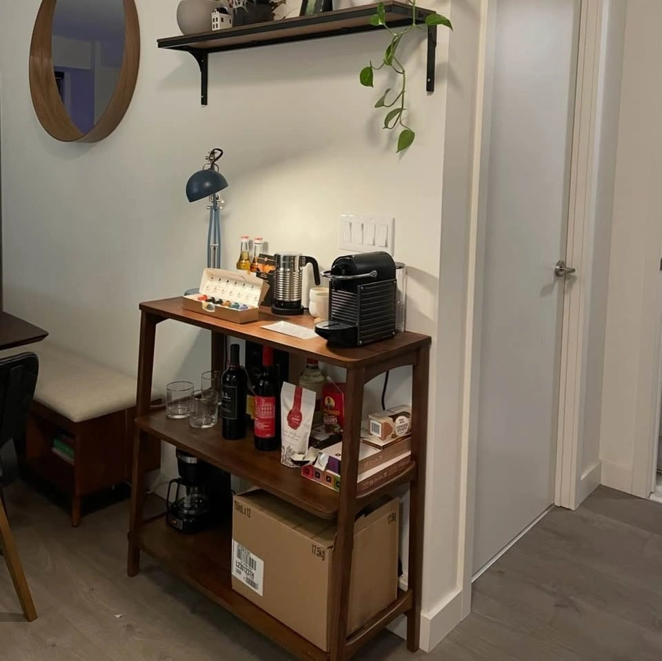 Solid mid-century walnut wood shelf from Article. Purchased two years ago (originally $649+tax) and in like-new condition except for a single crack on the top shelf, see photos for details, price reflects the damage. Pickup only near Yonge and Eglinton. Must have enough space in vehicle to pickup.