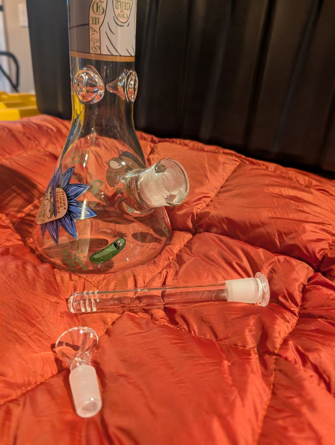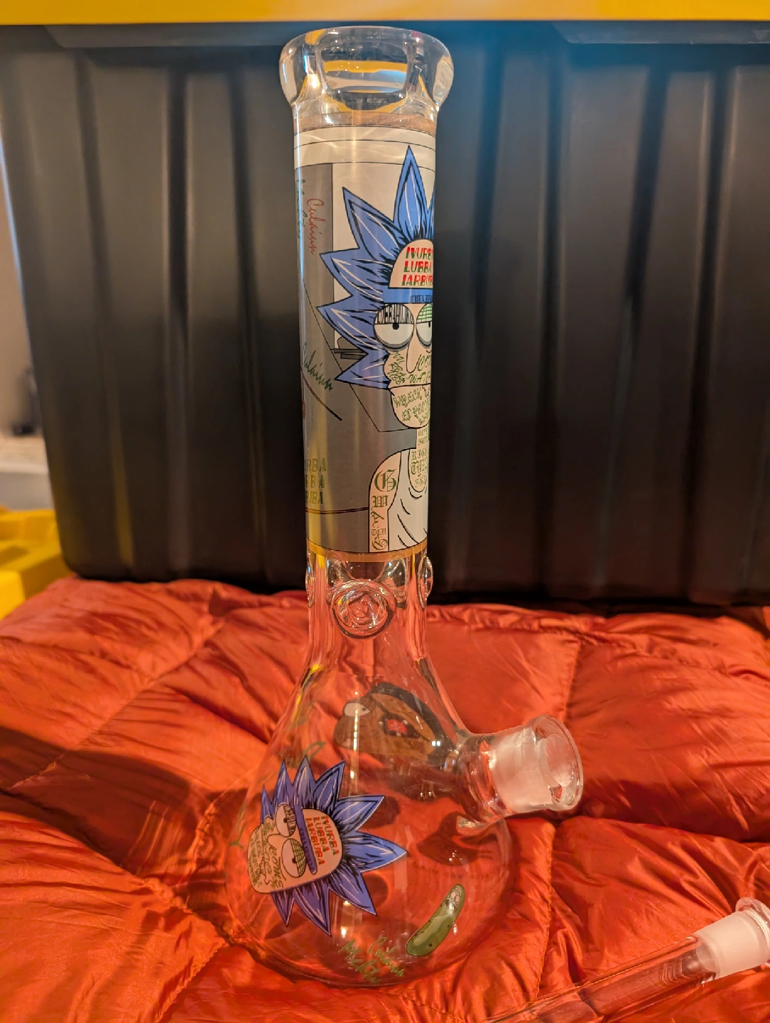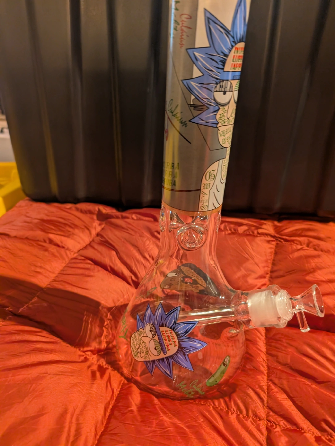 Rick and Morty brand new Bong.I bought this straight from the seller. All Brand new in the Box never used. It is very thick glass and hand blown. Bongs of this thickness and quality retail $75.Perfect Gift!
