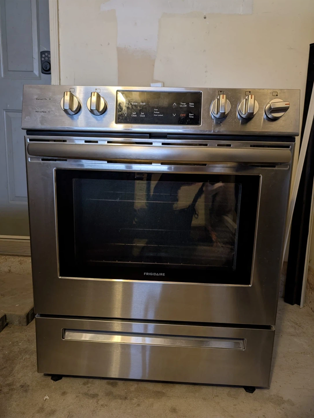 Stainless steel Frigidaire cooking range in a perfect working condition. We are selling it as we upgraded to a gas range. The cooking range manual and everything is intact. It is from a smoke free pet free home.