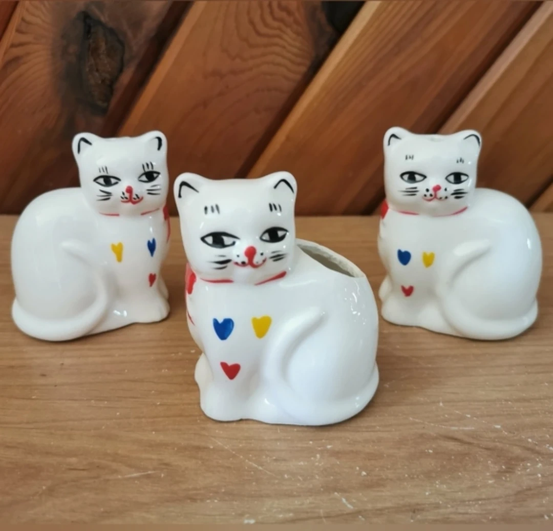 Vintage Set of 3 Handpainted Cats.