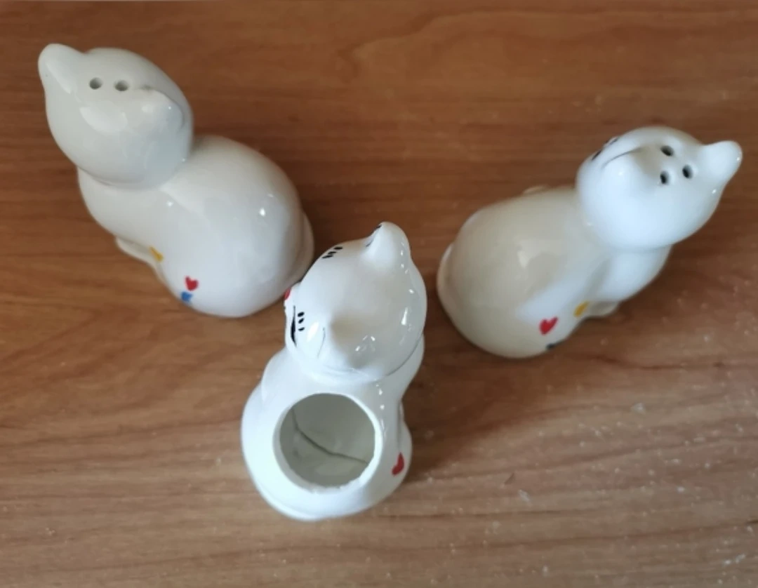 Adorable Set of Salt and Pepper Shakers and Toothpick Holder.