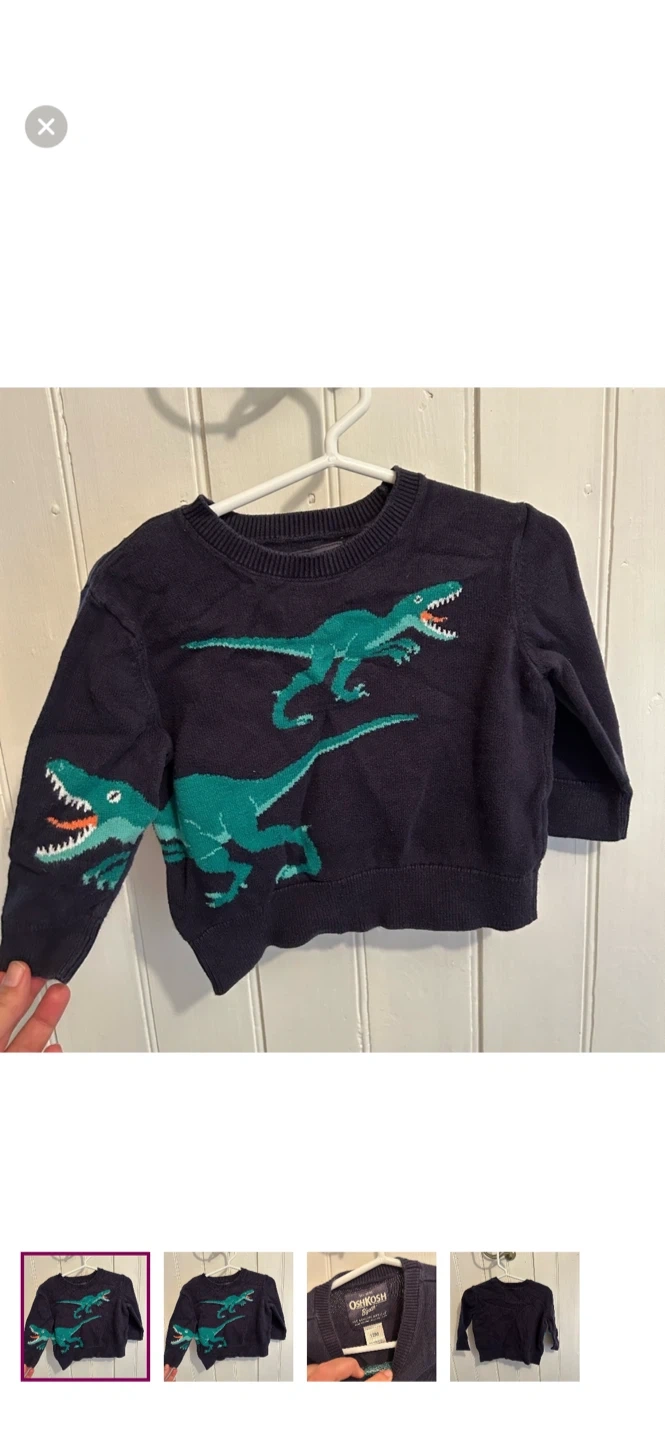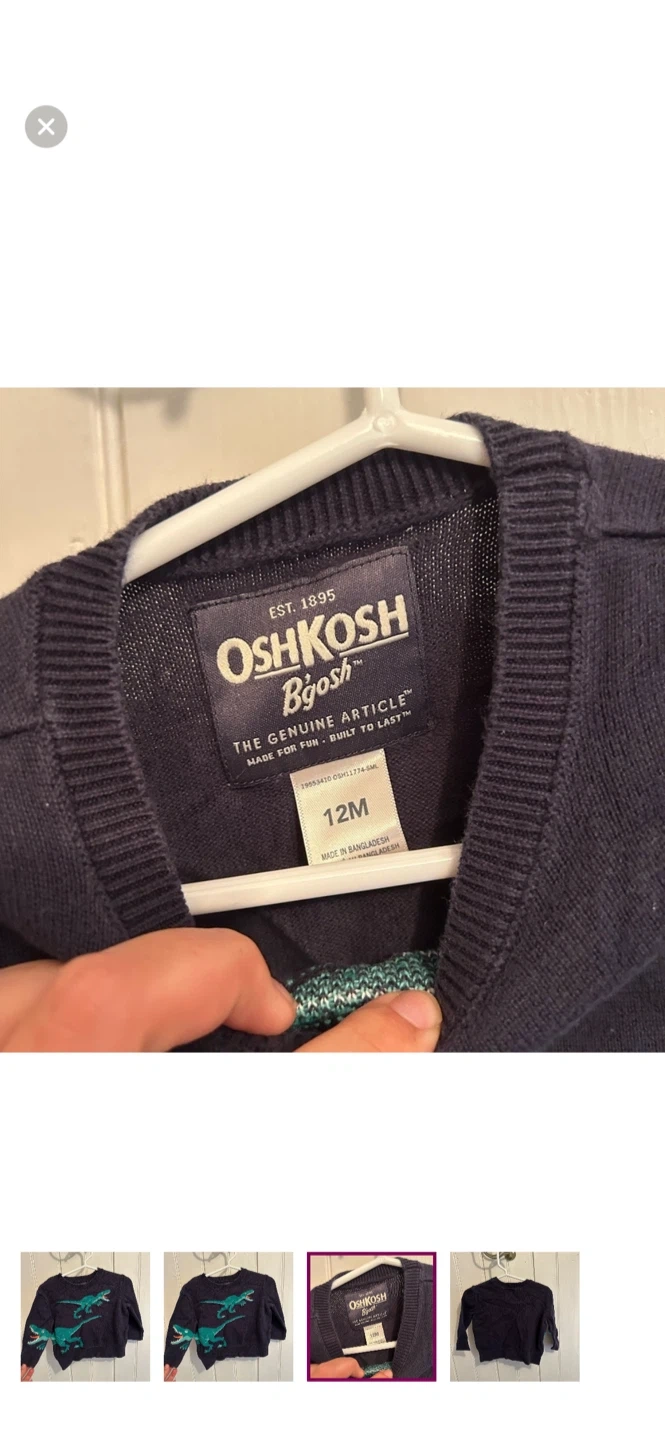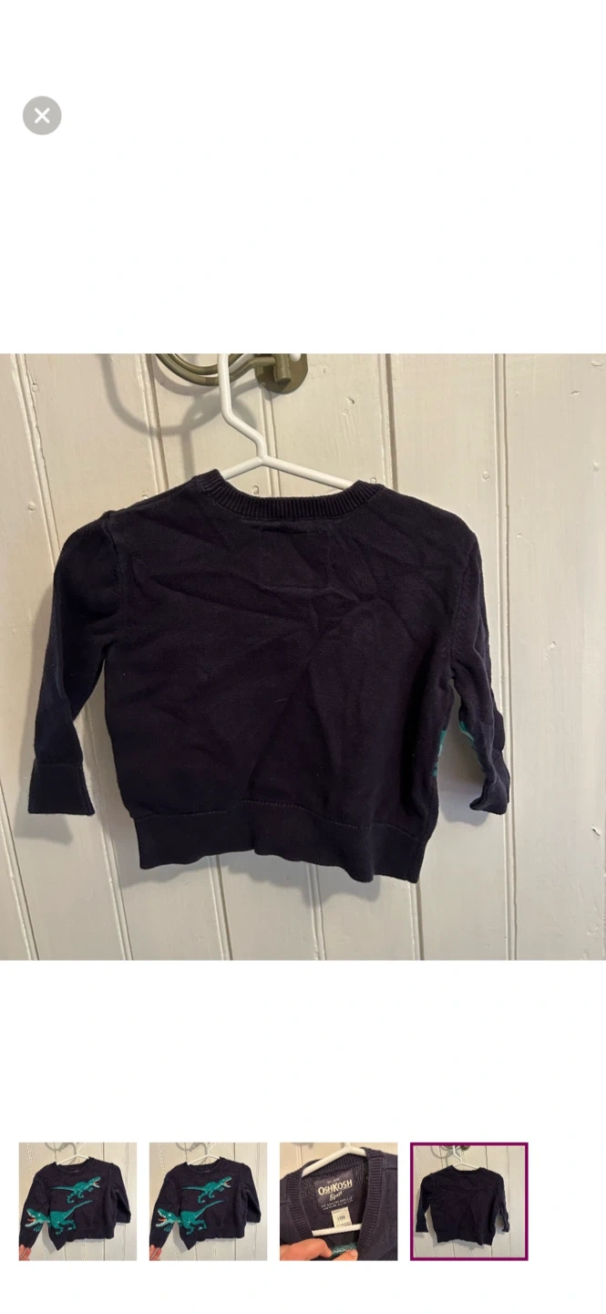 Oshkosh brand. Knit pullover sweater. Navy & green Dino. Size 12m. Brand new condition