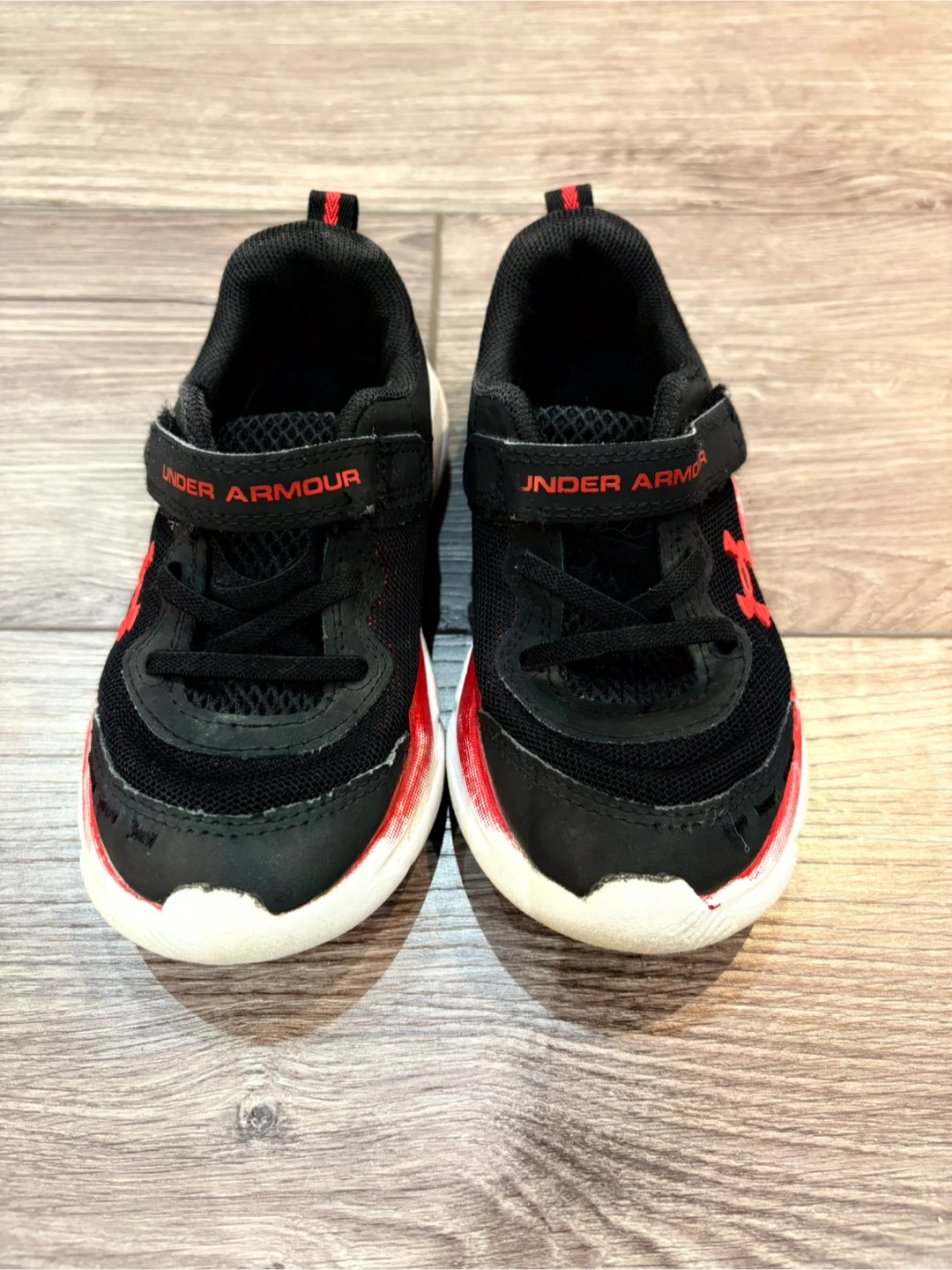 Selling a pair of Under Armour kids' sneakers in toddler size 9. They're black with red accents. Pick up in the Yonge and Finch area.
