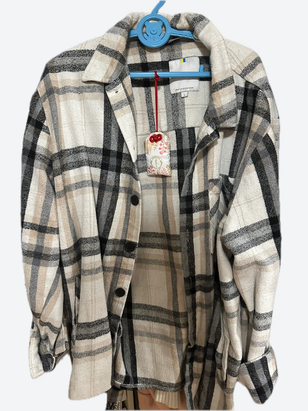 Here's a comfy plaid overshirt from Spirit of Scandinavia! It's a size L and perfect for layering during the cooler months. The neutral tones make it easy to match with anything!