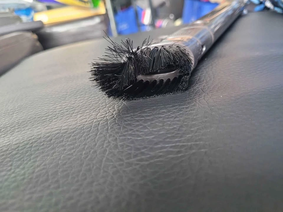 Nylon bristles well-used but still has plenty of life left if you don't mind the cosmetic appearance!