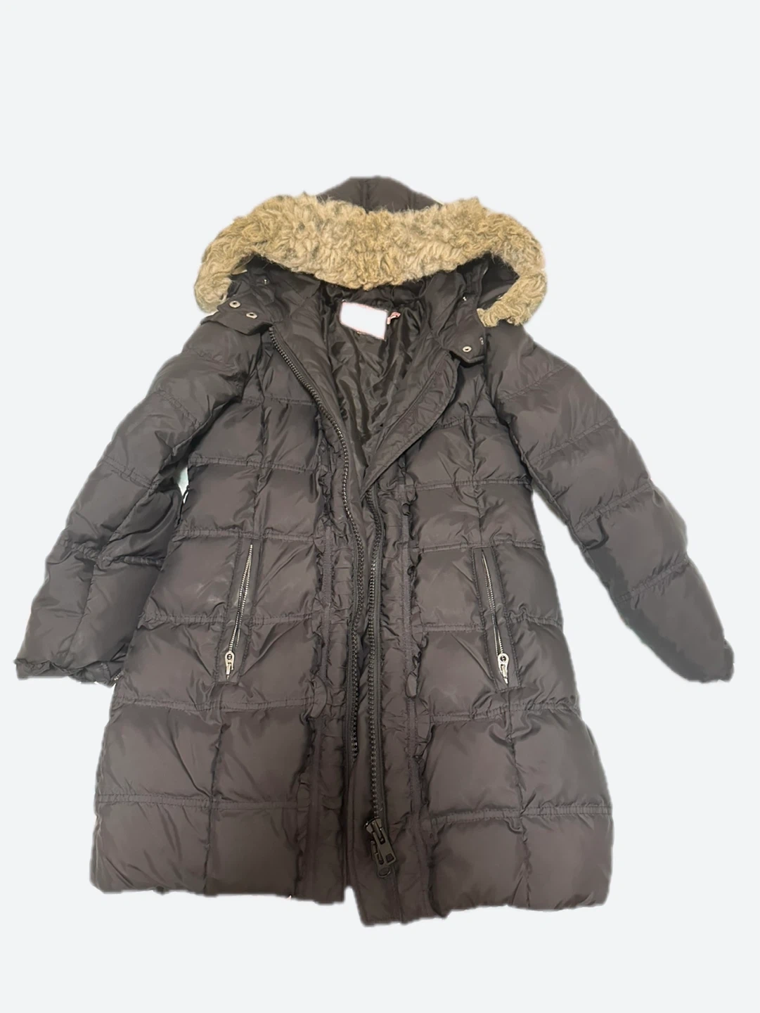 Selling a Juicy Couture puffer coat in black. It features a faux fur hood and is in good condition. Perfect for staying warm during the colder months!