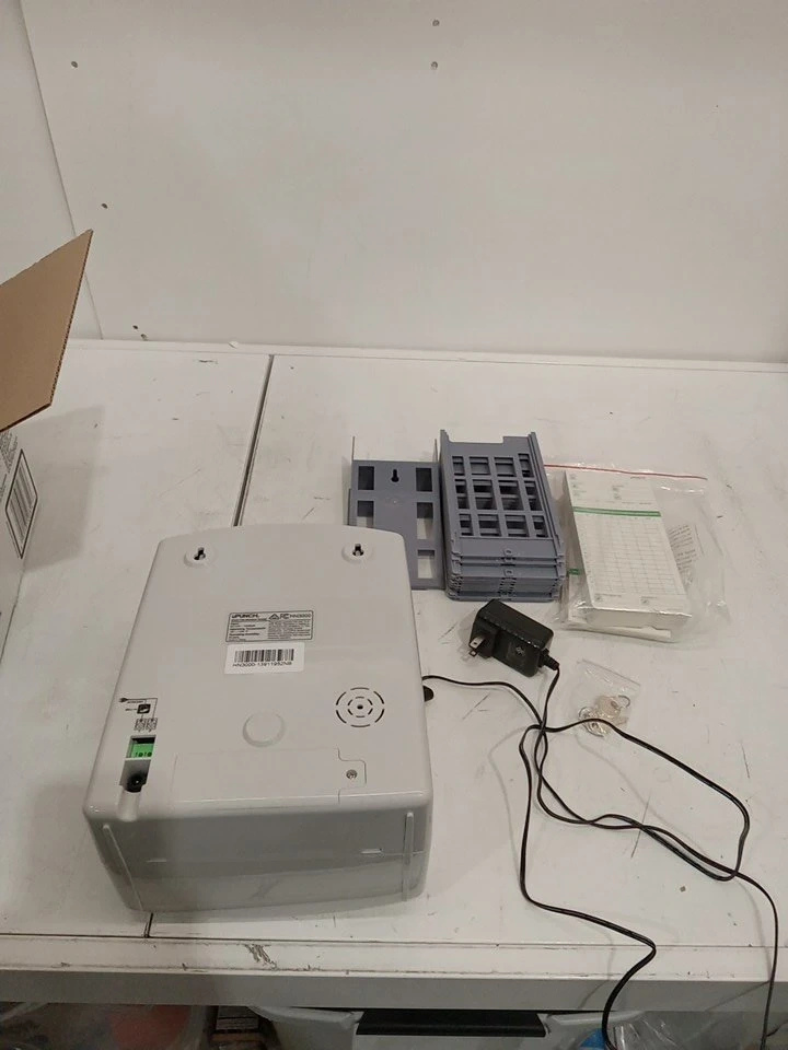 I'm selling a uPunch HN3000 time clock, perfect for small businesses. This specific unit is in great working condition and comes with a card rack, time cards, and keys.
