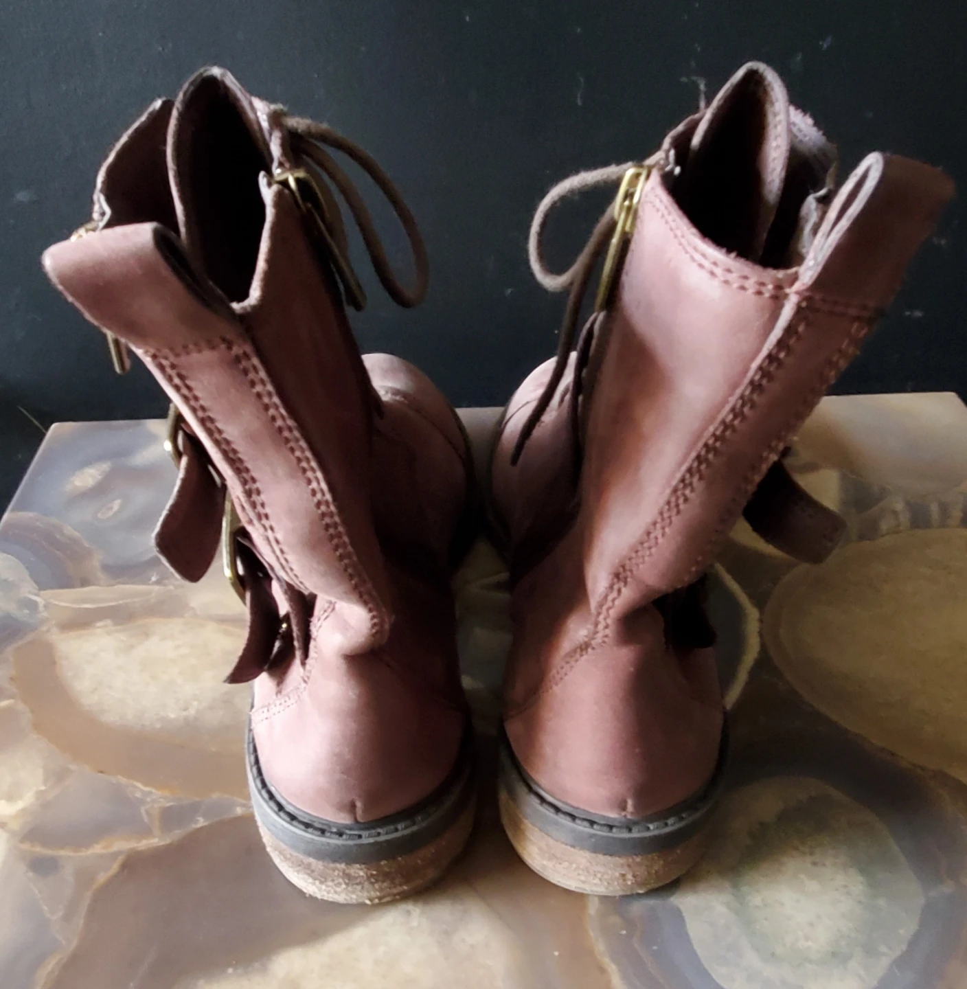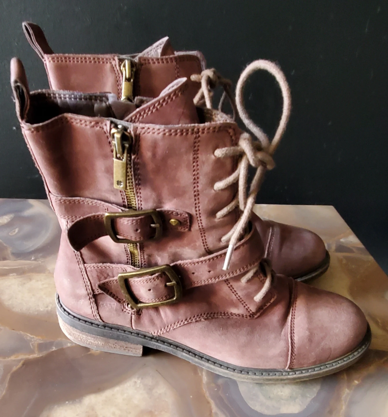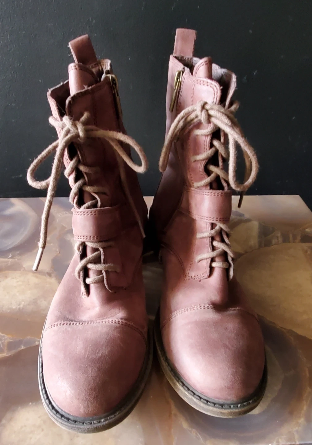 Brown leather boots from Lucky Brand. In pretty good condition. Lace-up front with buckle details and a side zipper.