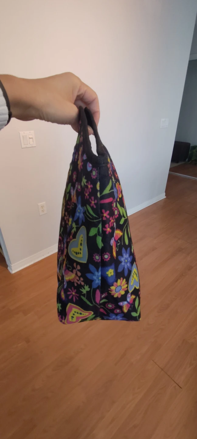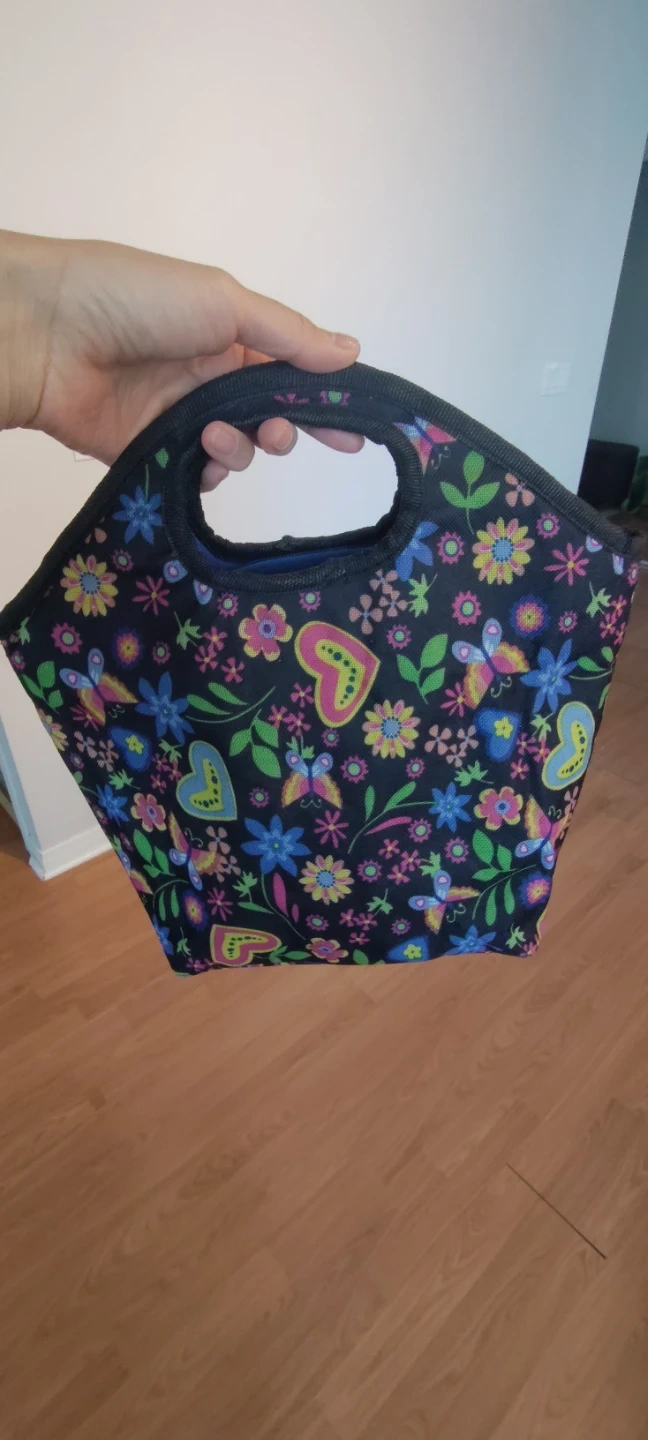 Check out this adorable floral insulated lunch bag! It's perfect for keeping your lunch cool. The inside is lined with an easy-to-clean material, and it has a convenient zipper closure. Great for school, work, or picnics!