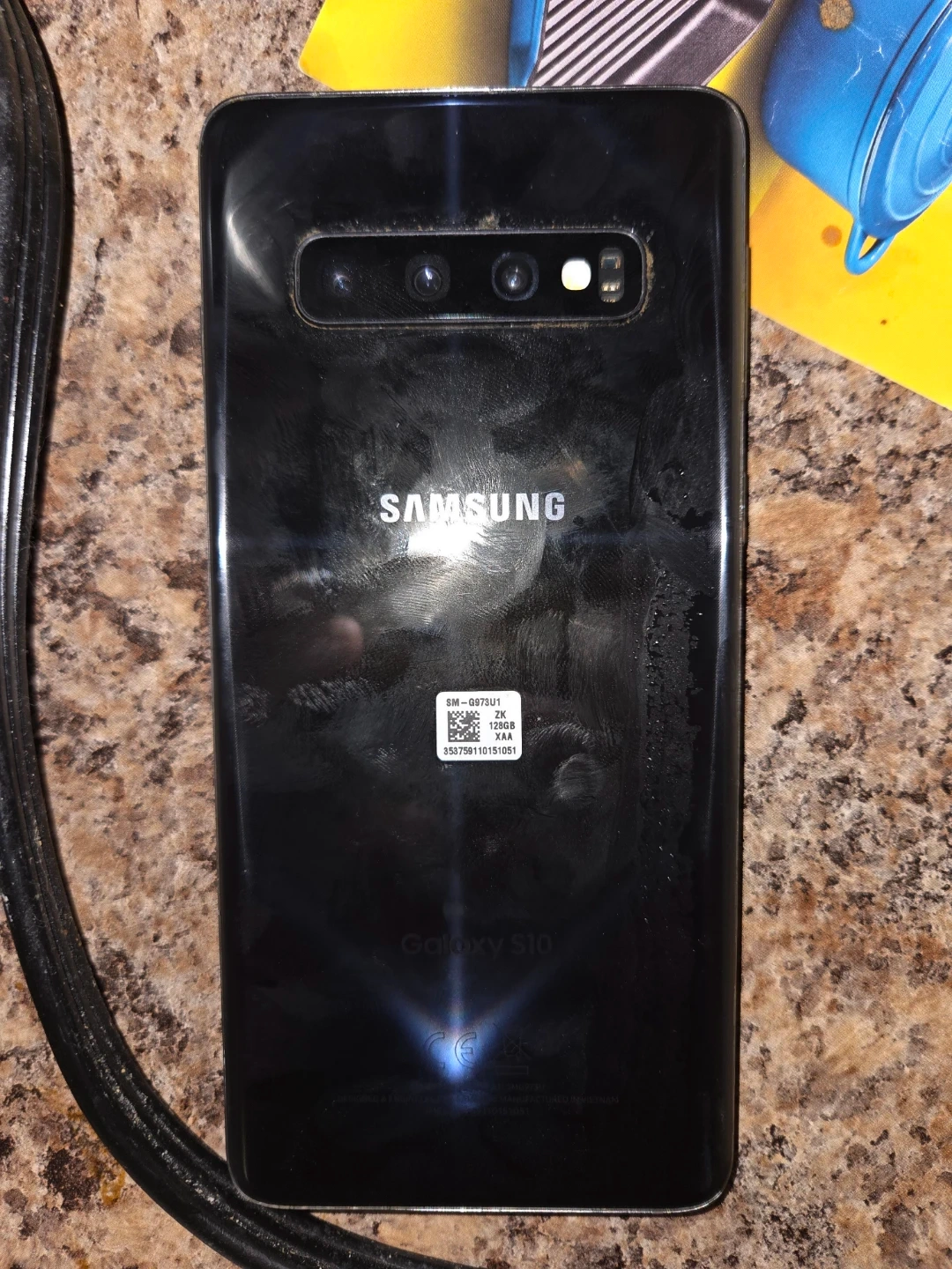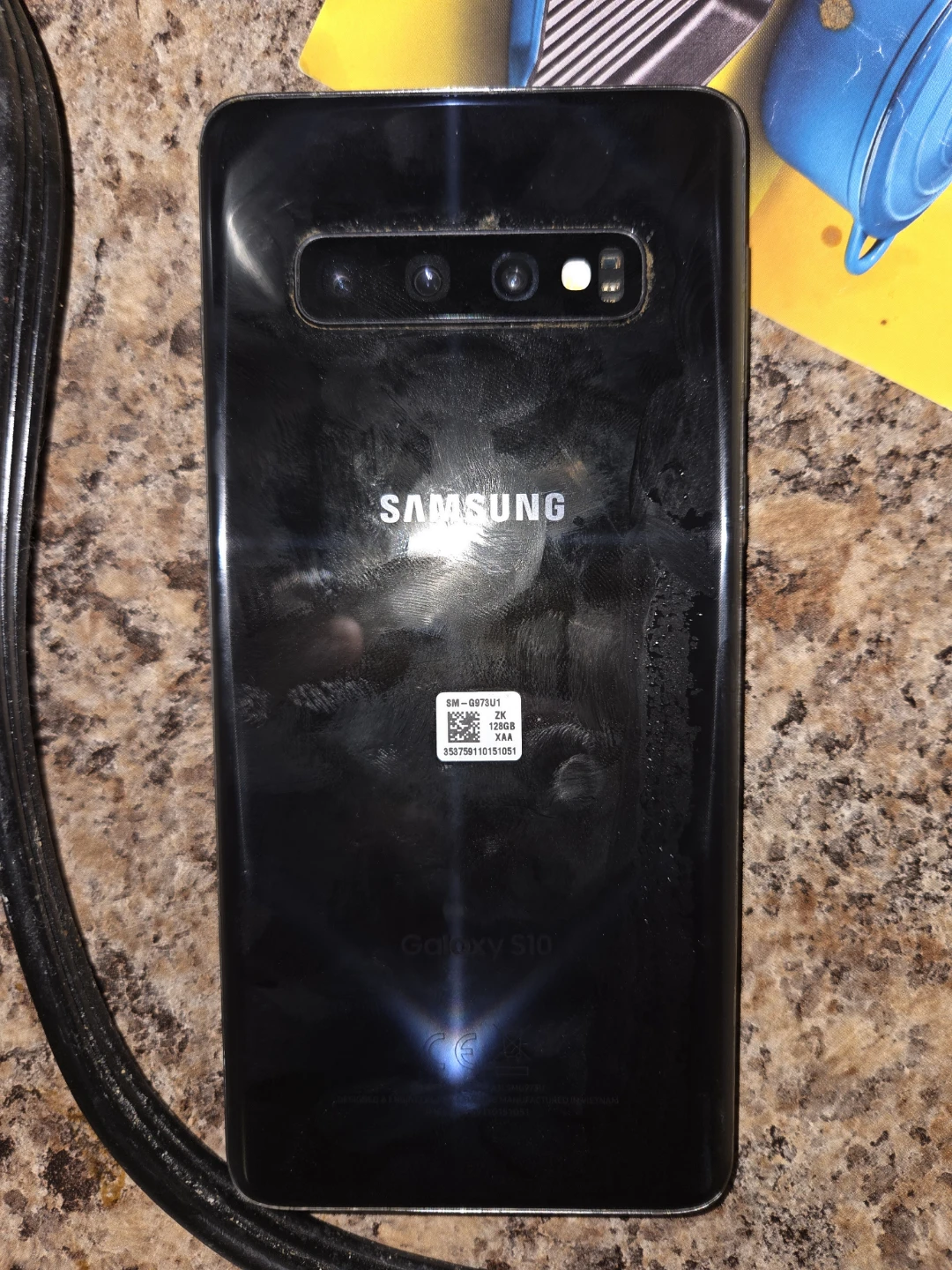 Selling a Samsung Galaxy S10 in black with 128GB of storage. It's in used condition, and only charges wirelessly, but still works great! Model number is SM-G973U1.