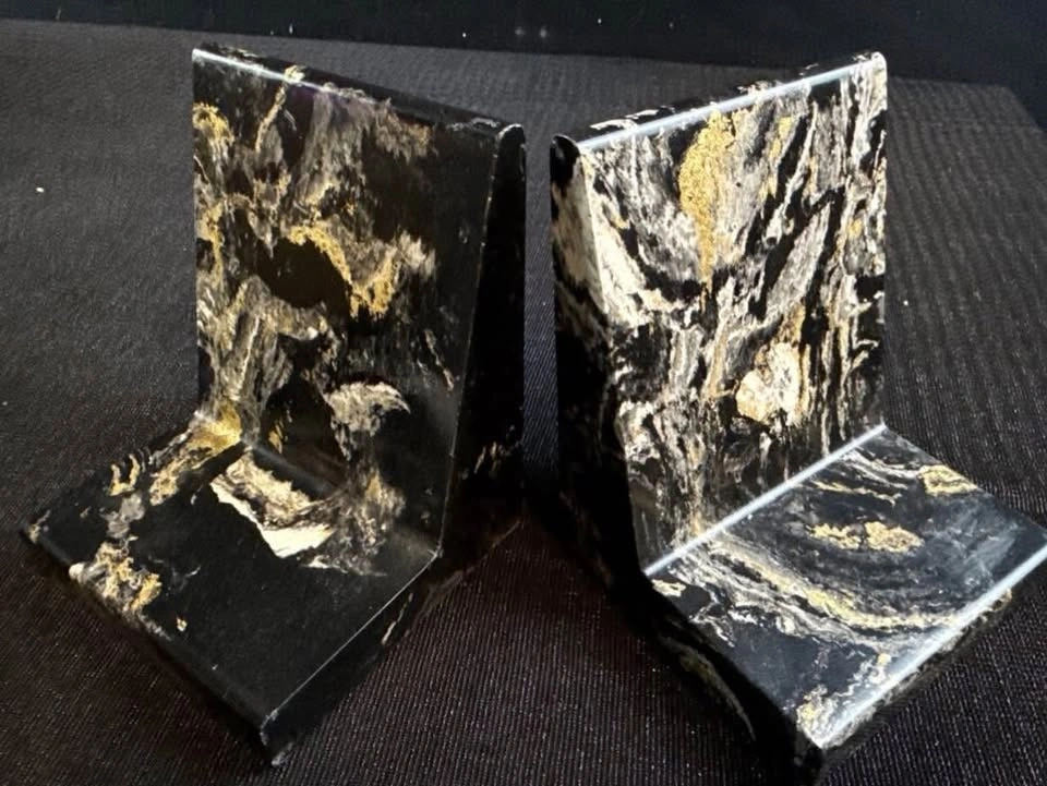 2. Alberta-Made Black & Gold Marble Bookends