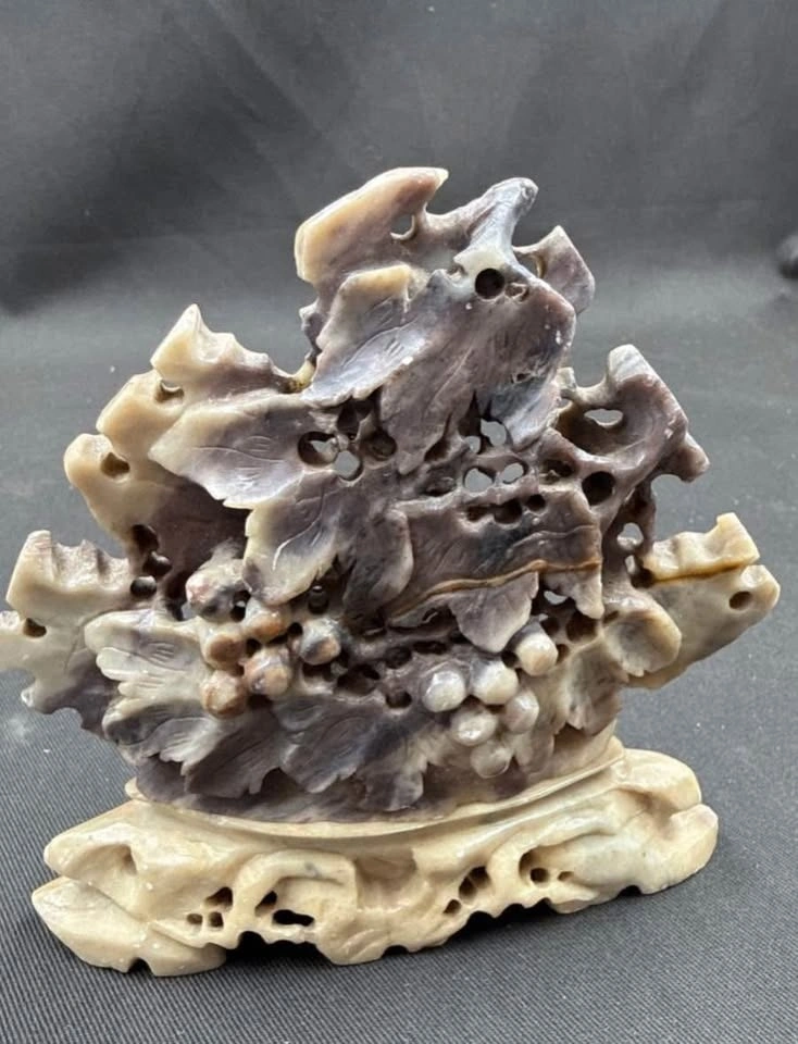 10. Chinese Hand-carved Soapstone Sculpture (Floral / Grape Cluster Motif). $20