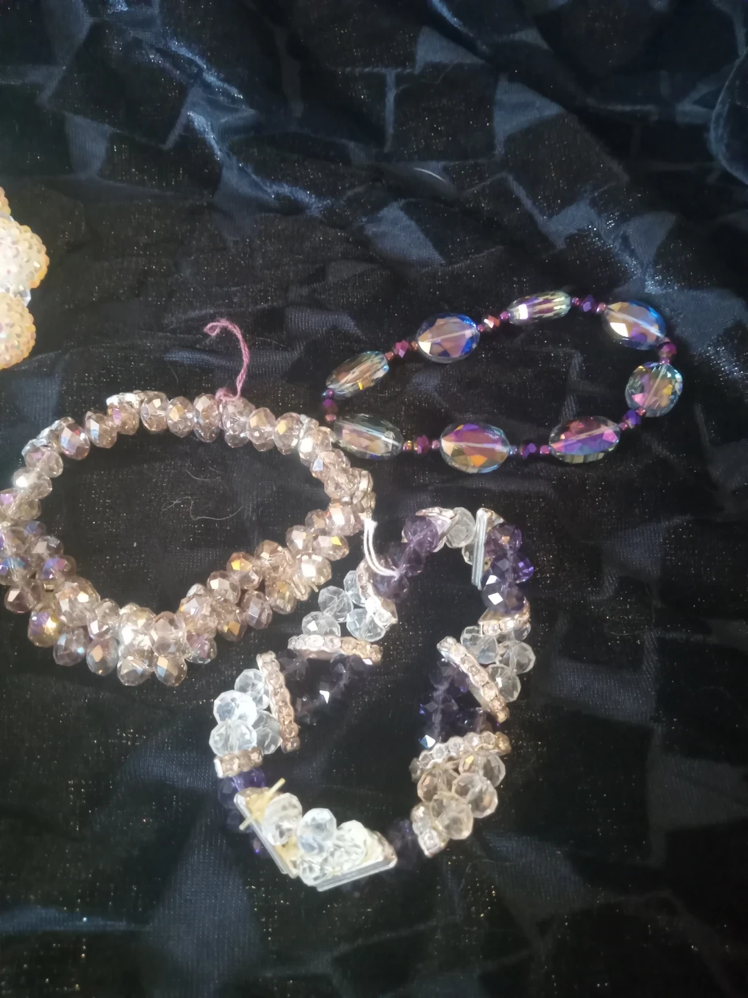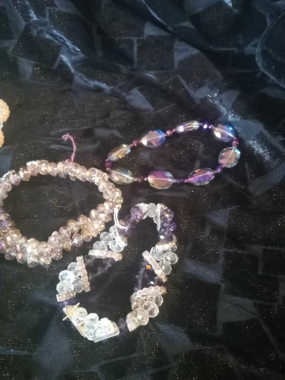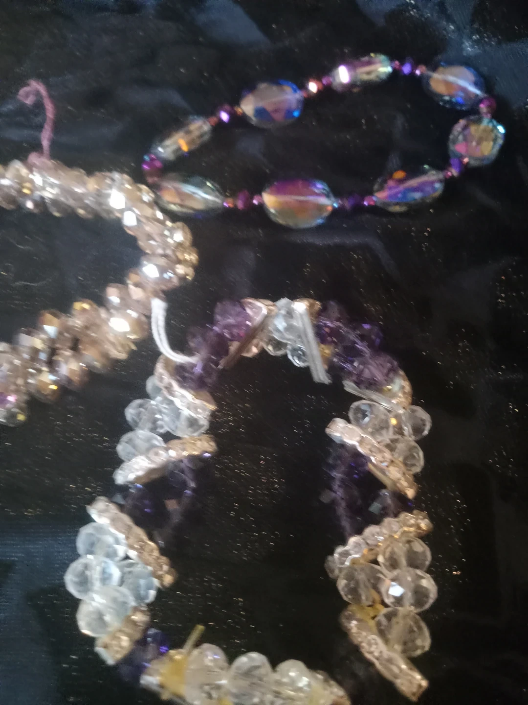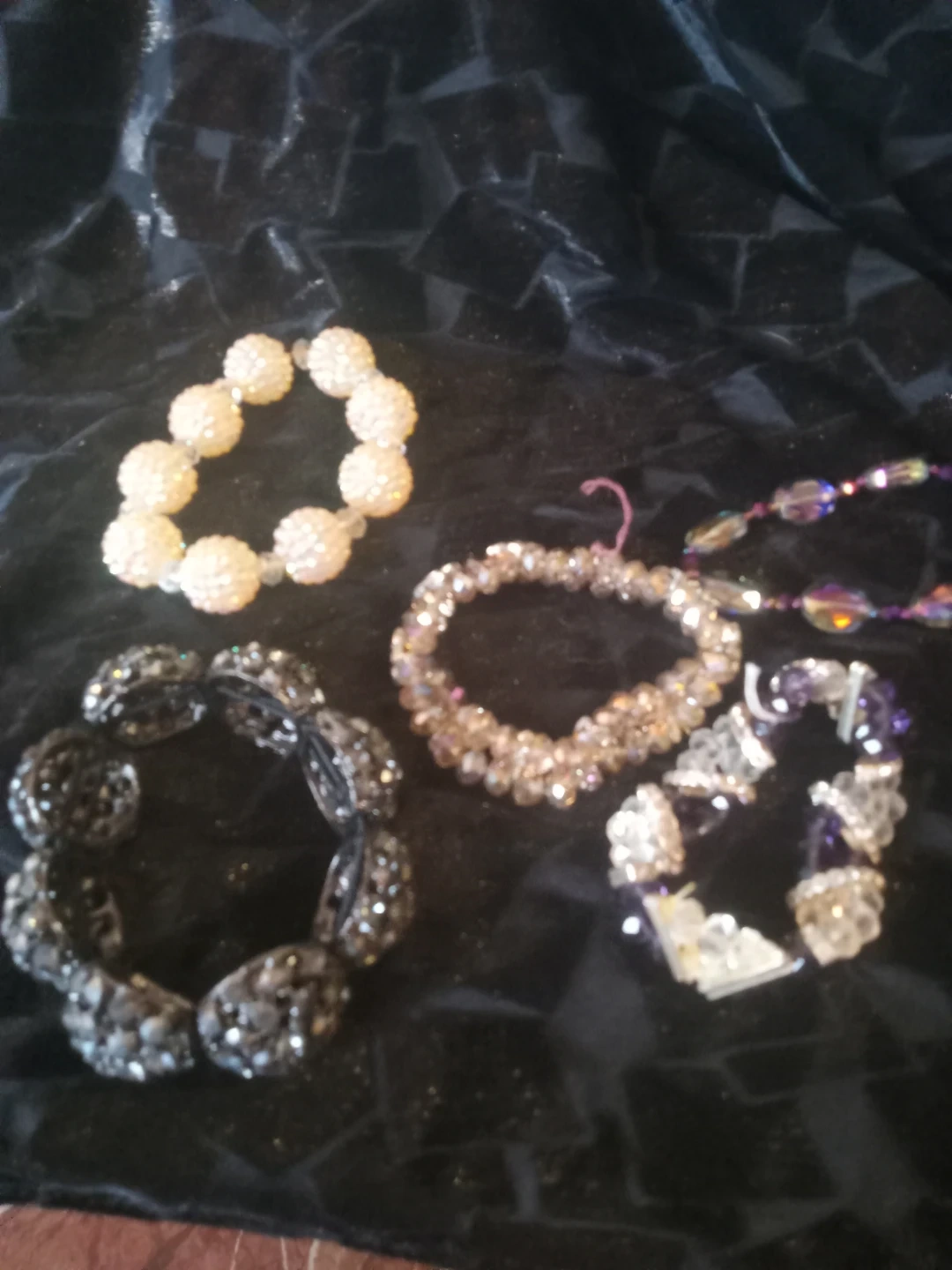 Here's a collection of assorted crystal bead bracelets! They're in great condition and ready to add some sparkle to your outfit. Perfect for stacking or wearing alone