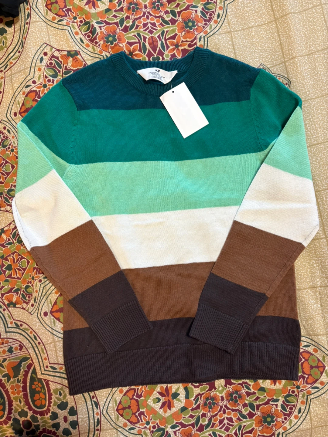 Selling a cute H&M sweater with a fun colour block stripe design! It is new and perfect for adding a pop of colour to your wardrobe