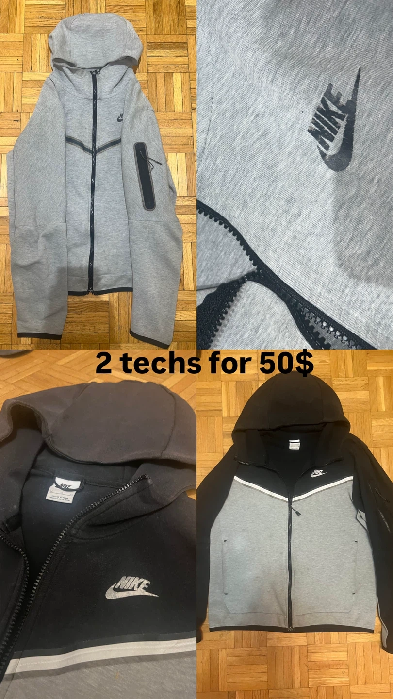 Selling two Nike Tech Fleece hoodies! One is grey and the other is black and grey. Both are in great condition and ready for a new owner. Perfect for staying warm and stylish!