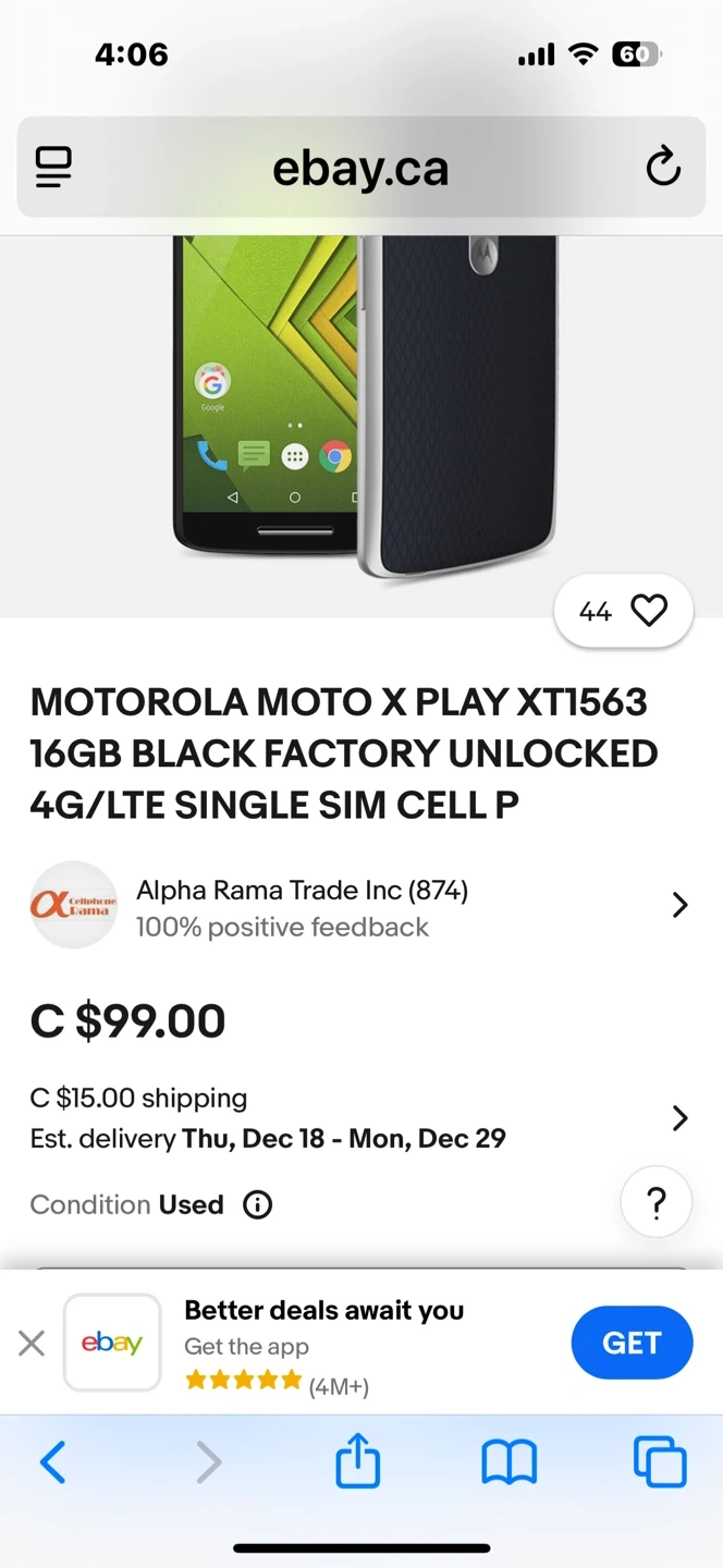 Selling a Motorola Moto X Play XT1563 in black with 16GB of storage. It's factory unlocked and supports 4G/LTE with a single SIM card. The phone is used but in good condition!
