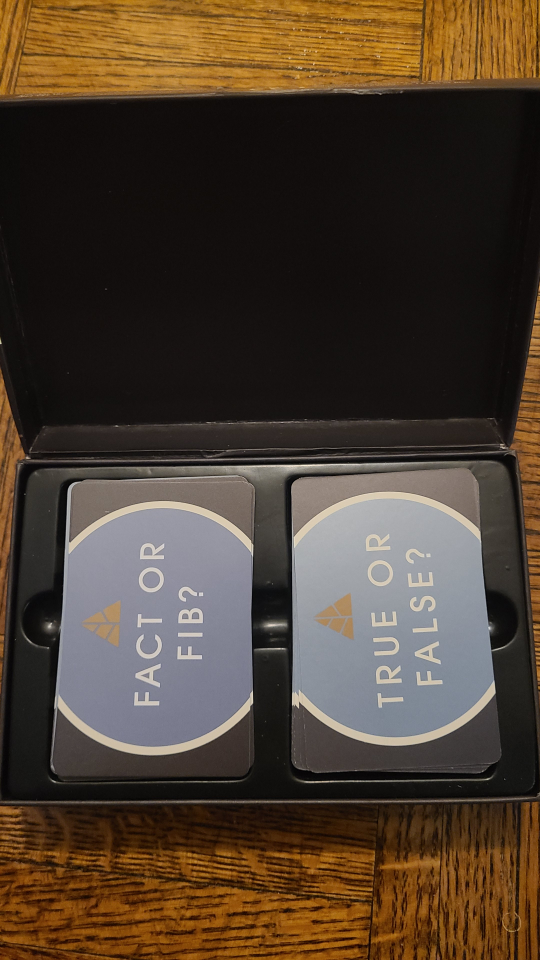 Selling a Fact or Fiction? card game. It's in great condition and ready for some fun game nights! Who's telling the truth?