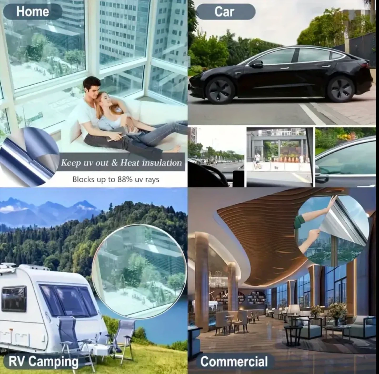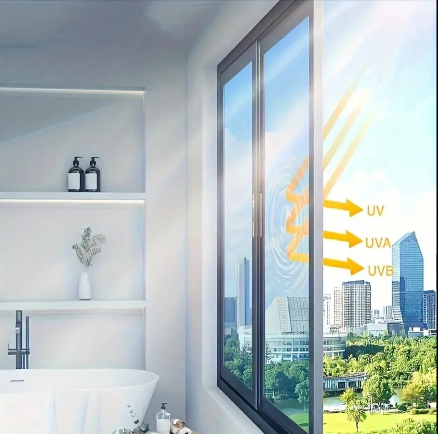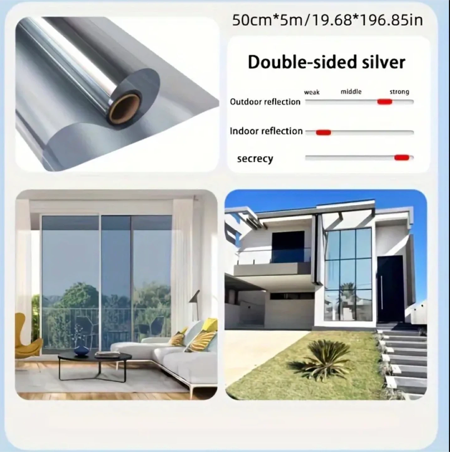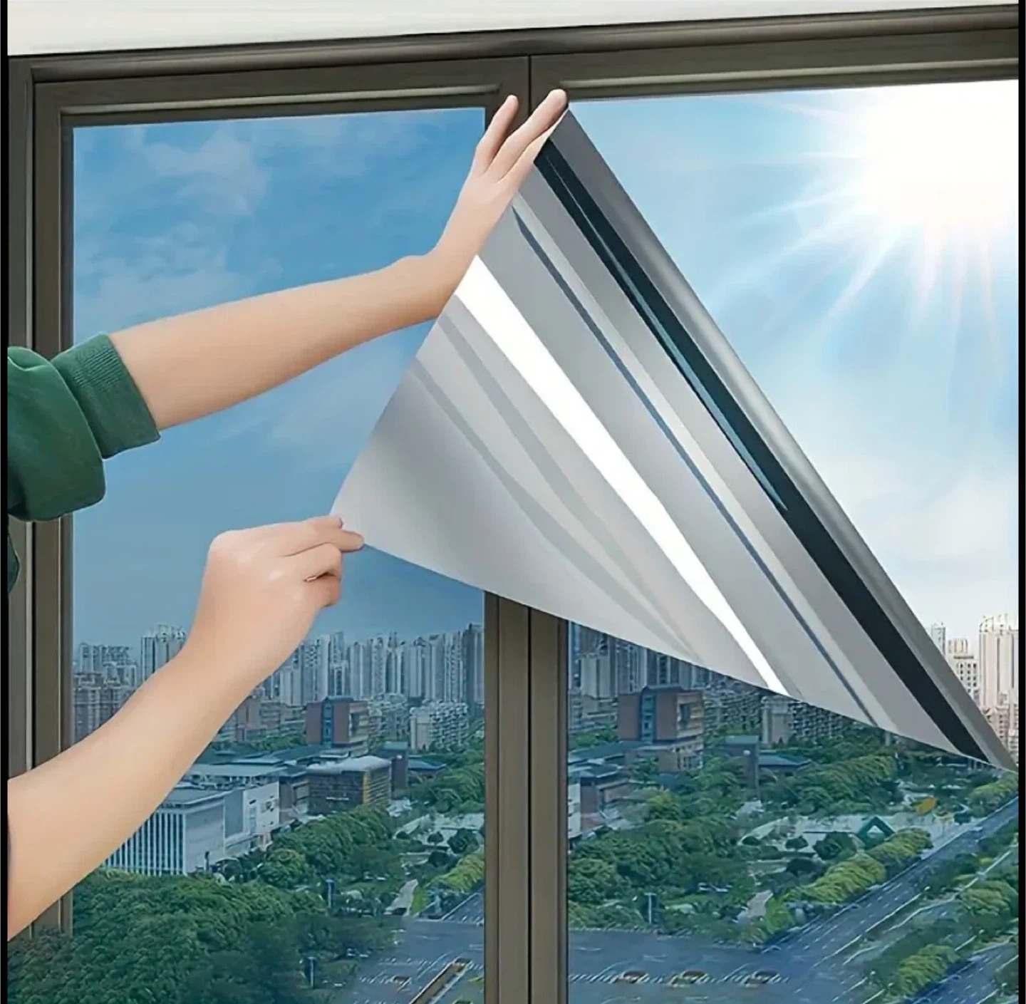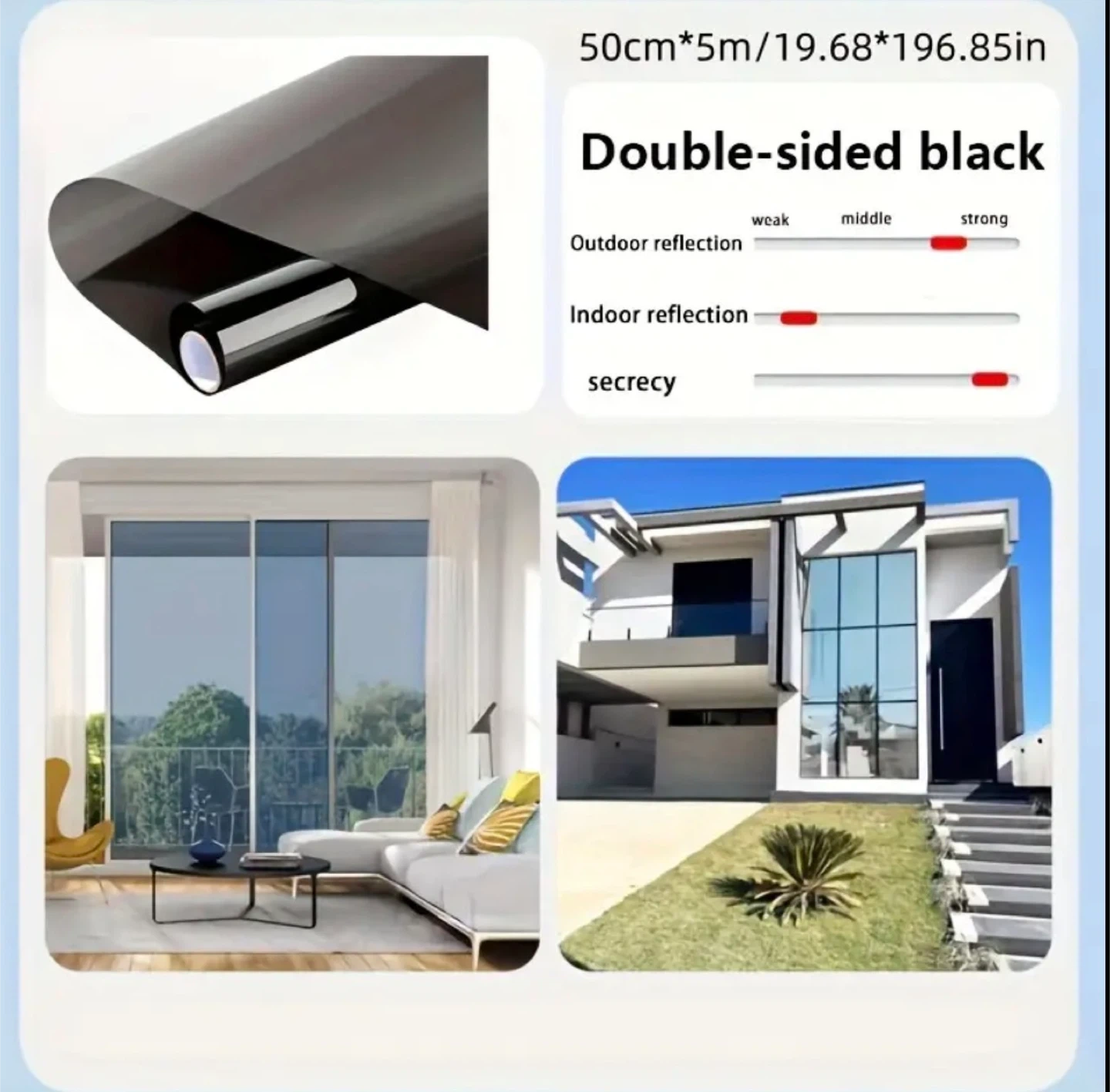 Sun-proof and heat-insulating window film set (1 roll of film and 3 installation tools), anti-see-through glass window film, anti-peeping and High Quality, can be used in various places such as home, office, room and camping
