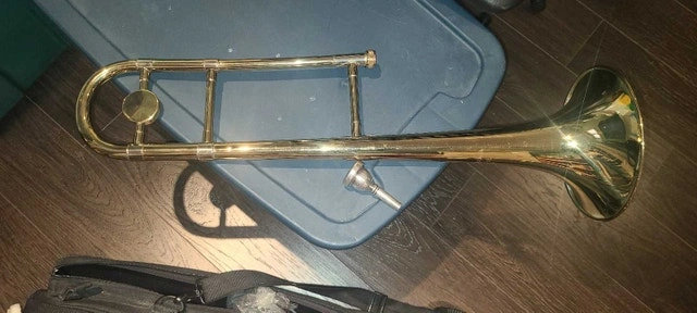 This is a Conn trombone in used condition. It has some wear and tear, but it is still in good working order. It would be a great instrument for a student or beginner. The trombone comes with a case and a mouthpiece. I'm asking $325. It's ready to make some beautiful music, or at least some loud noises – your call! If the ad's up, it's up for grabs!