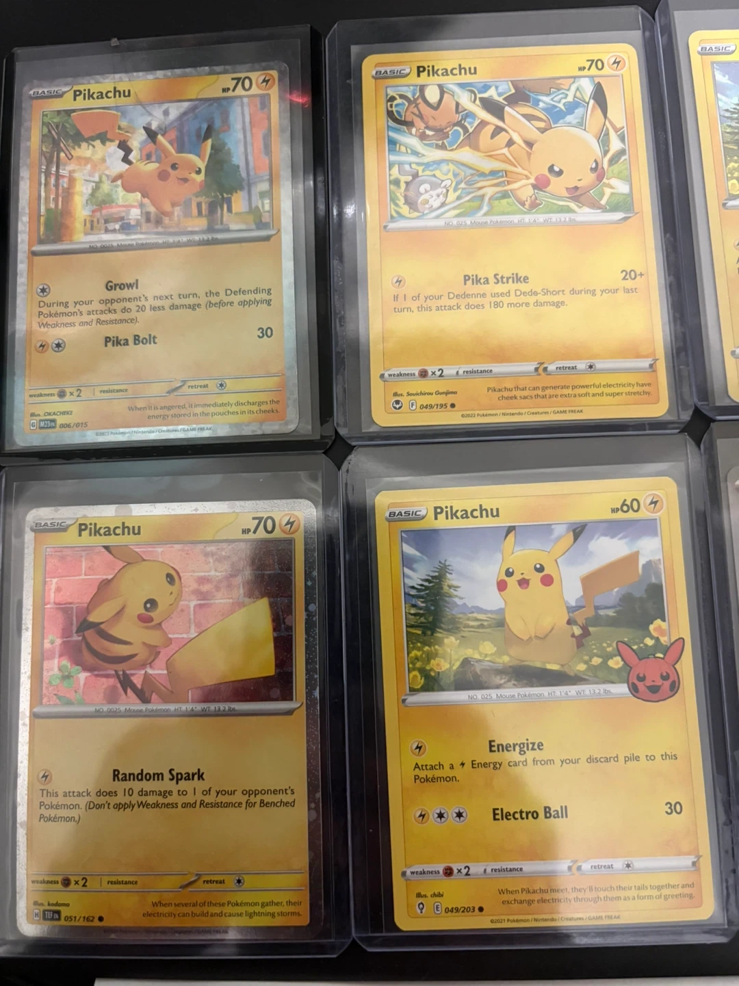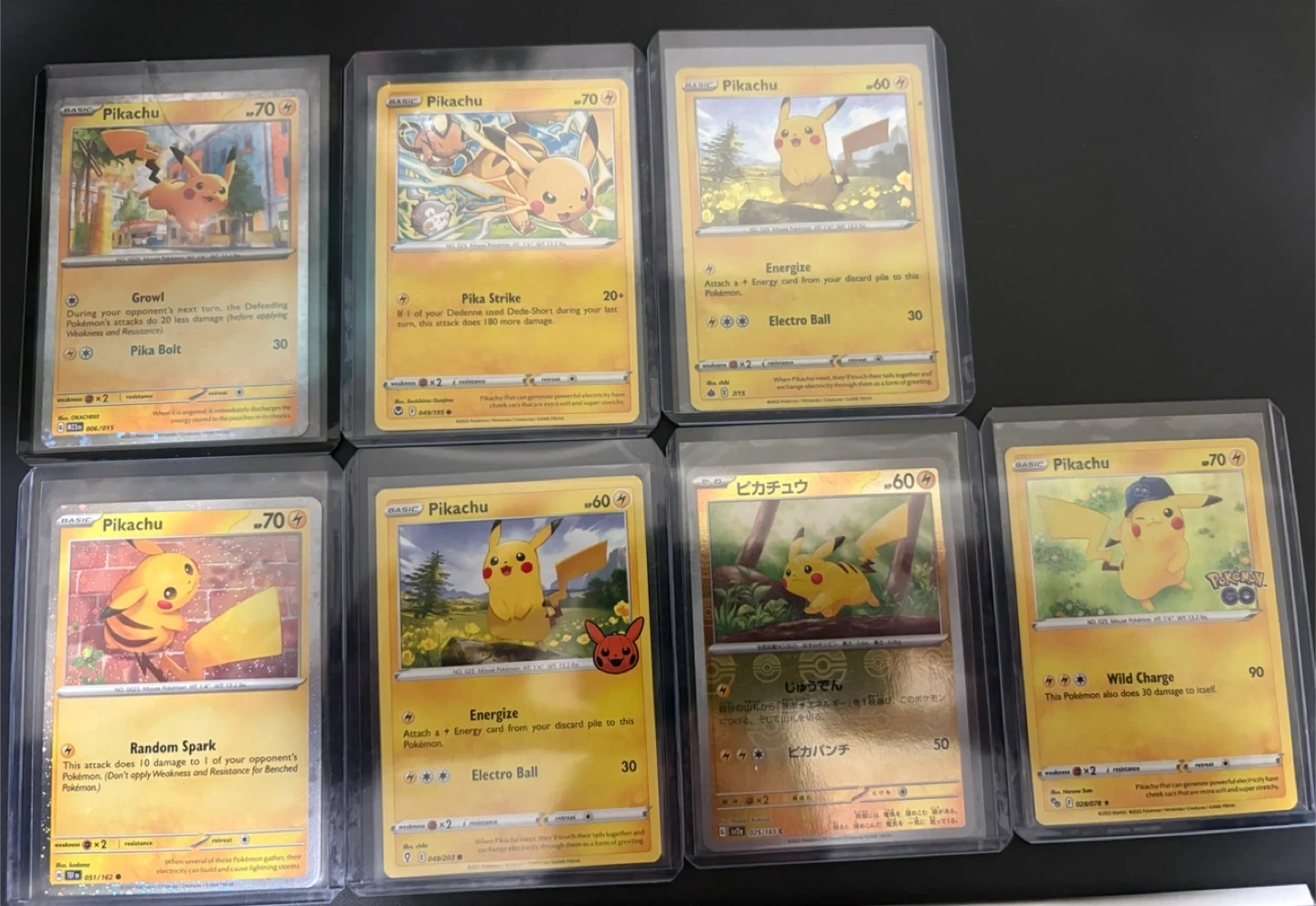 Selling a set of Pikachu Pokemon trading cards! These cards feature various Pikachu designs and abilities. Great for any Pokemon collector or fan!