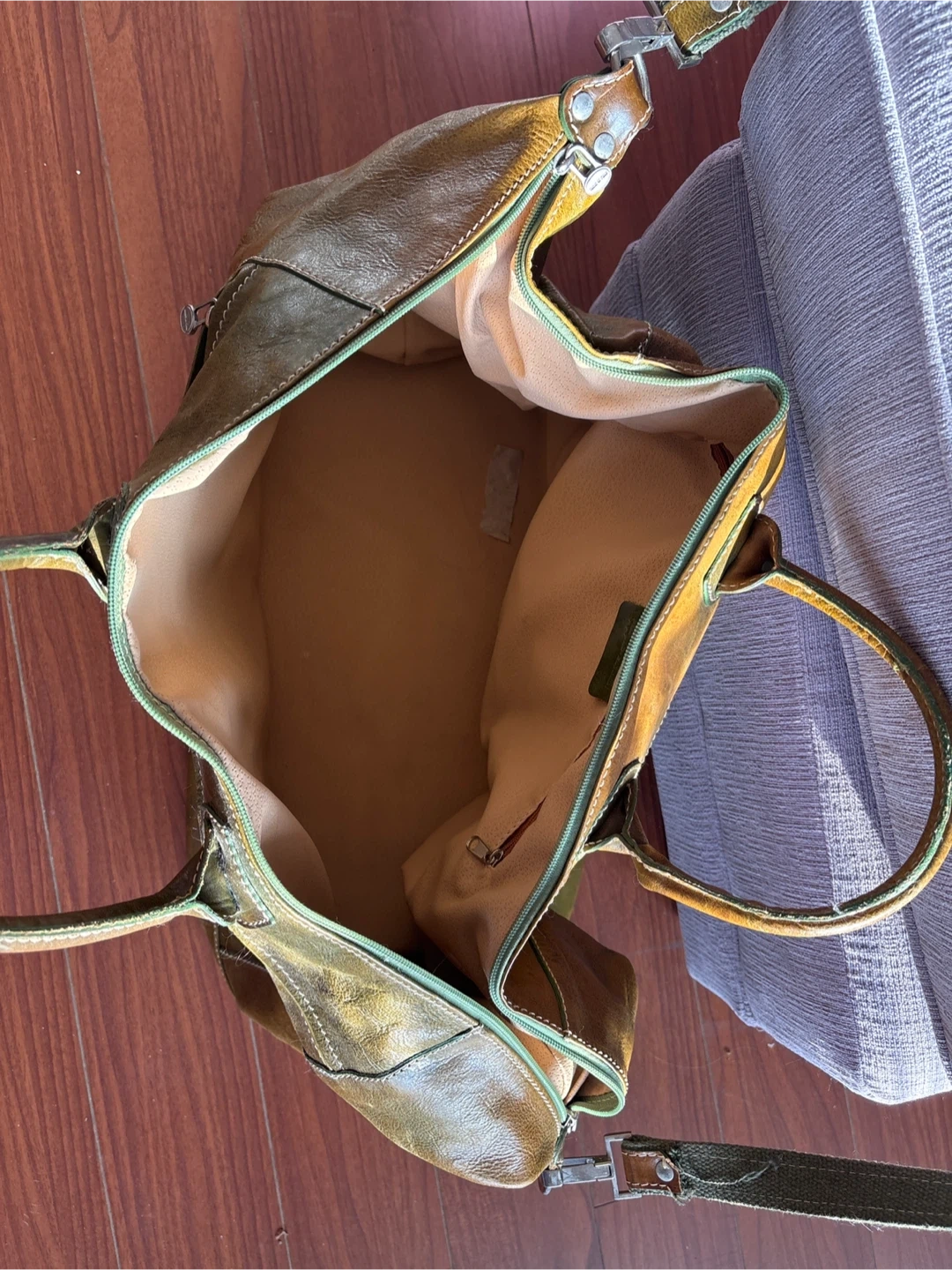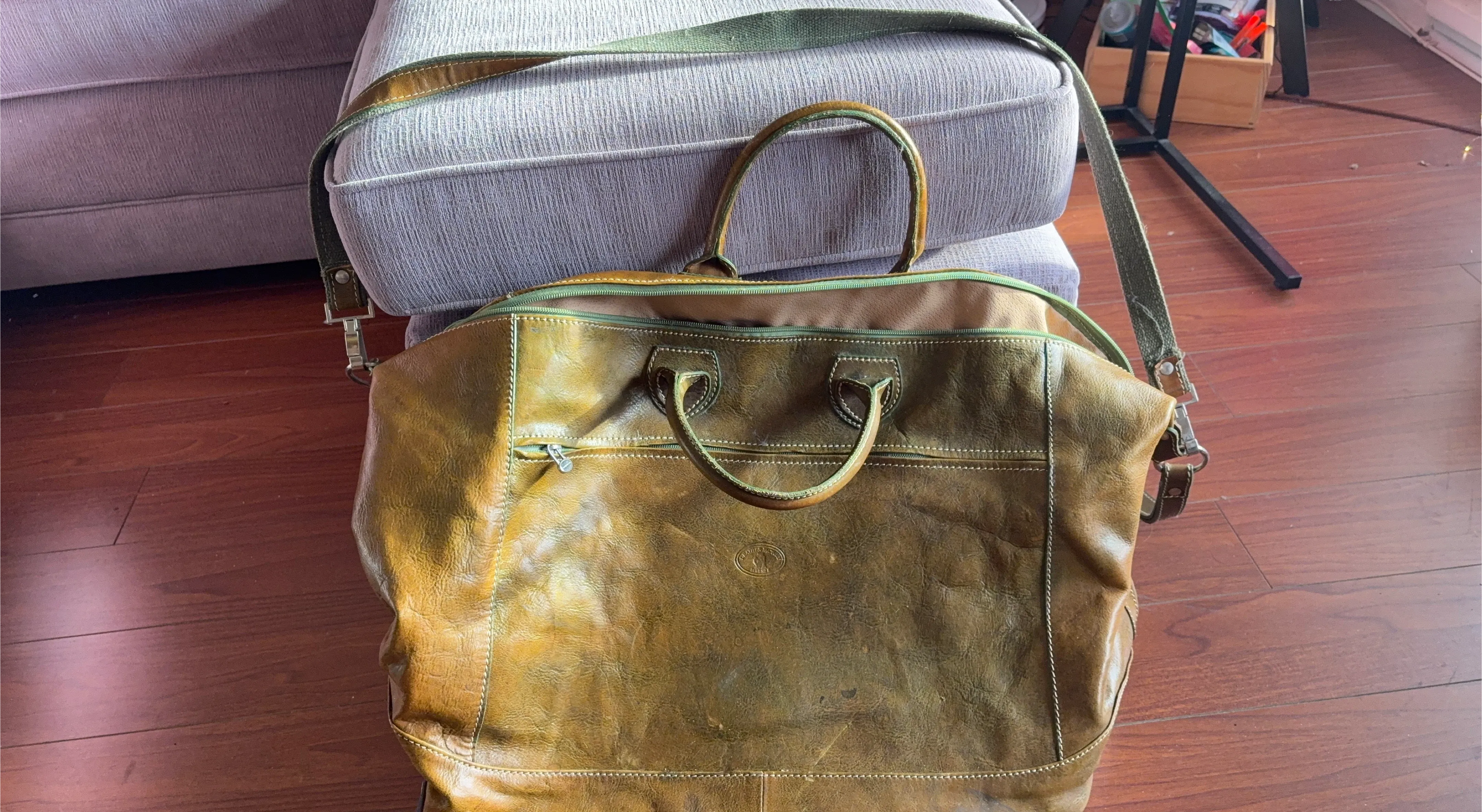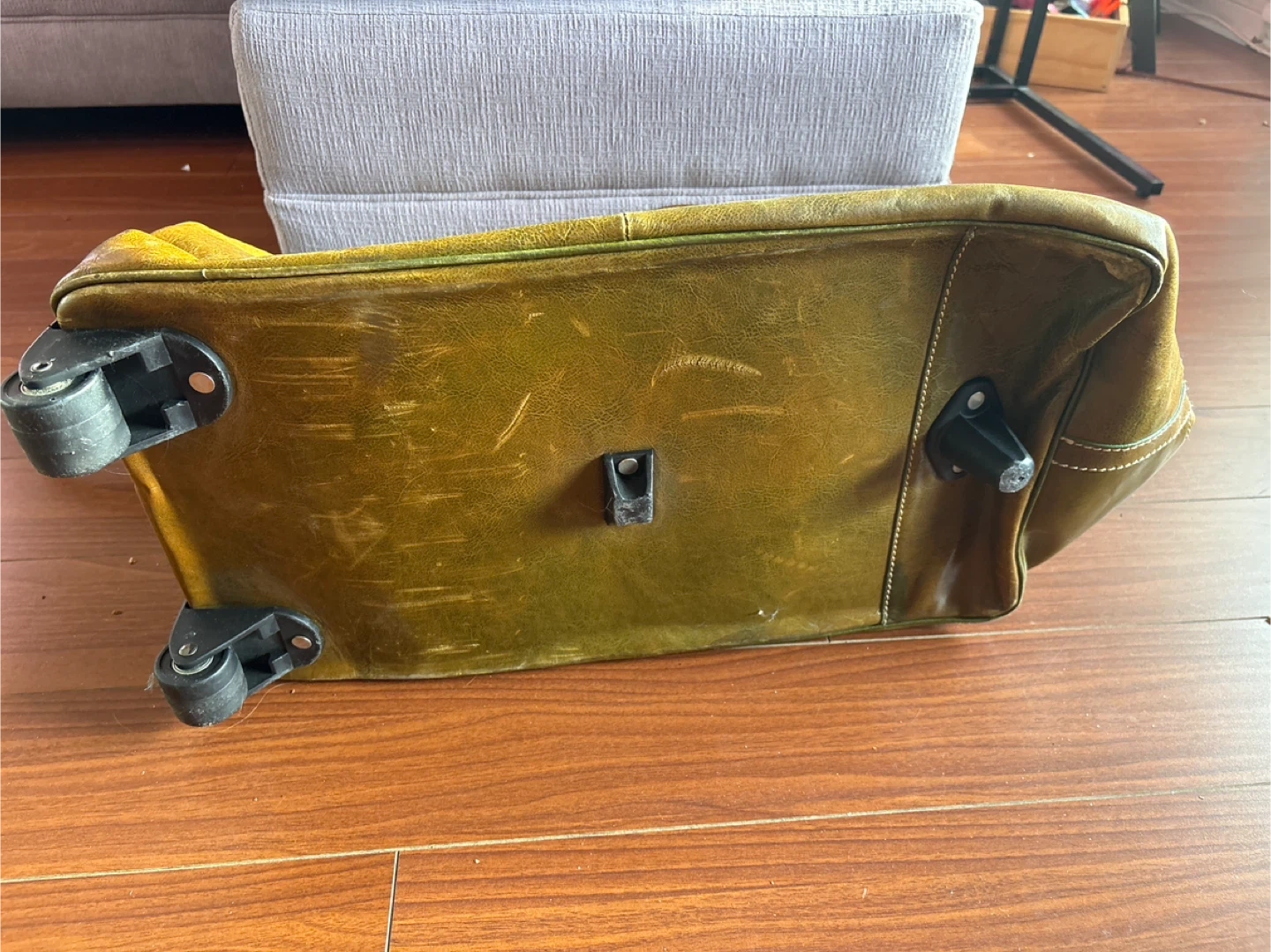 Selling a well-loved leather wheeled travel bag. It's a great size for weekend trips or as a carry-on. The leather has a nice patina and the wheels make it easy to move around. It comes with a shoulder strap too!
