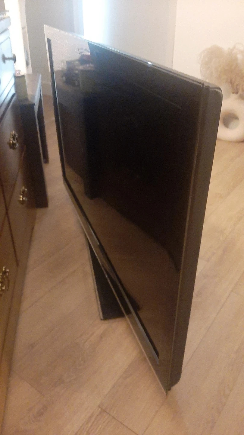 Samsung flat screen Smart TV. Seems the bulb is no longer working, so no picture first and then no sound. About 42 inch. TV is a bit heavy.