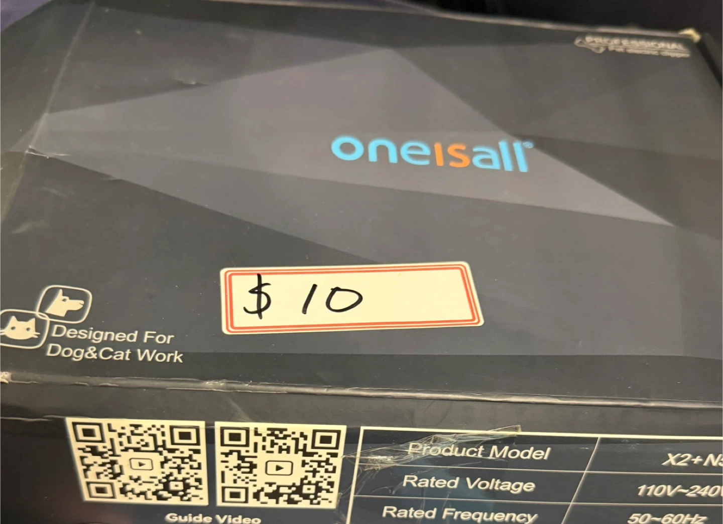 Selling a oneisall pet grooming clippers kit. It's designed for both dogs and cats. The kit comes with the box and all the components you see in the pictures, including the charger. I'm asking $10 for it