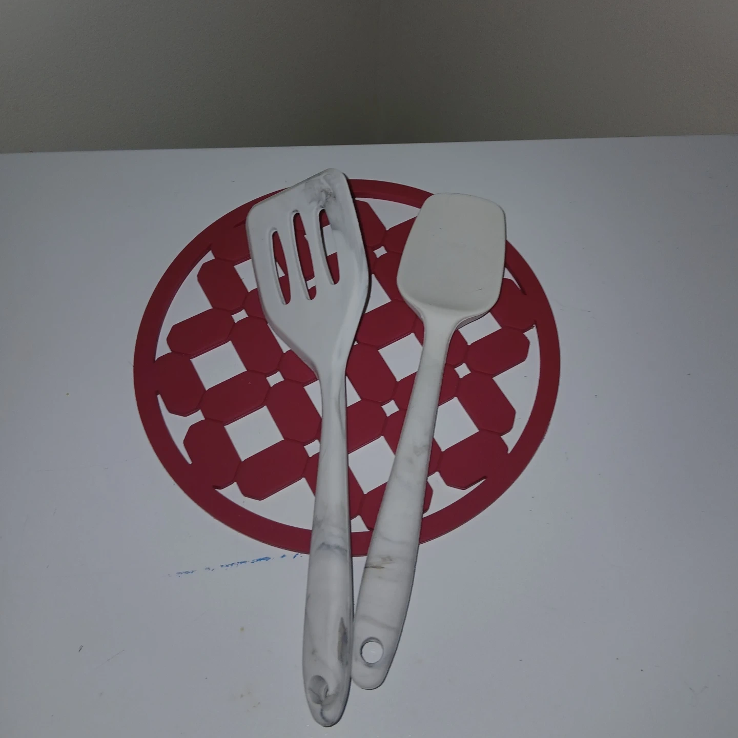 - Silicone spatula, spoon & trivet mat