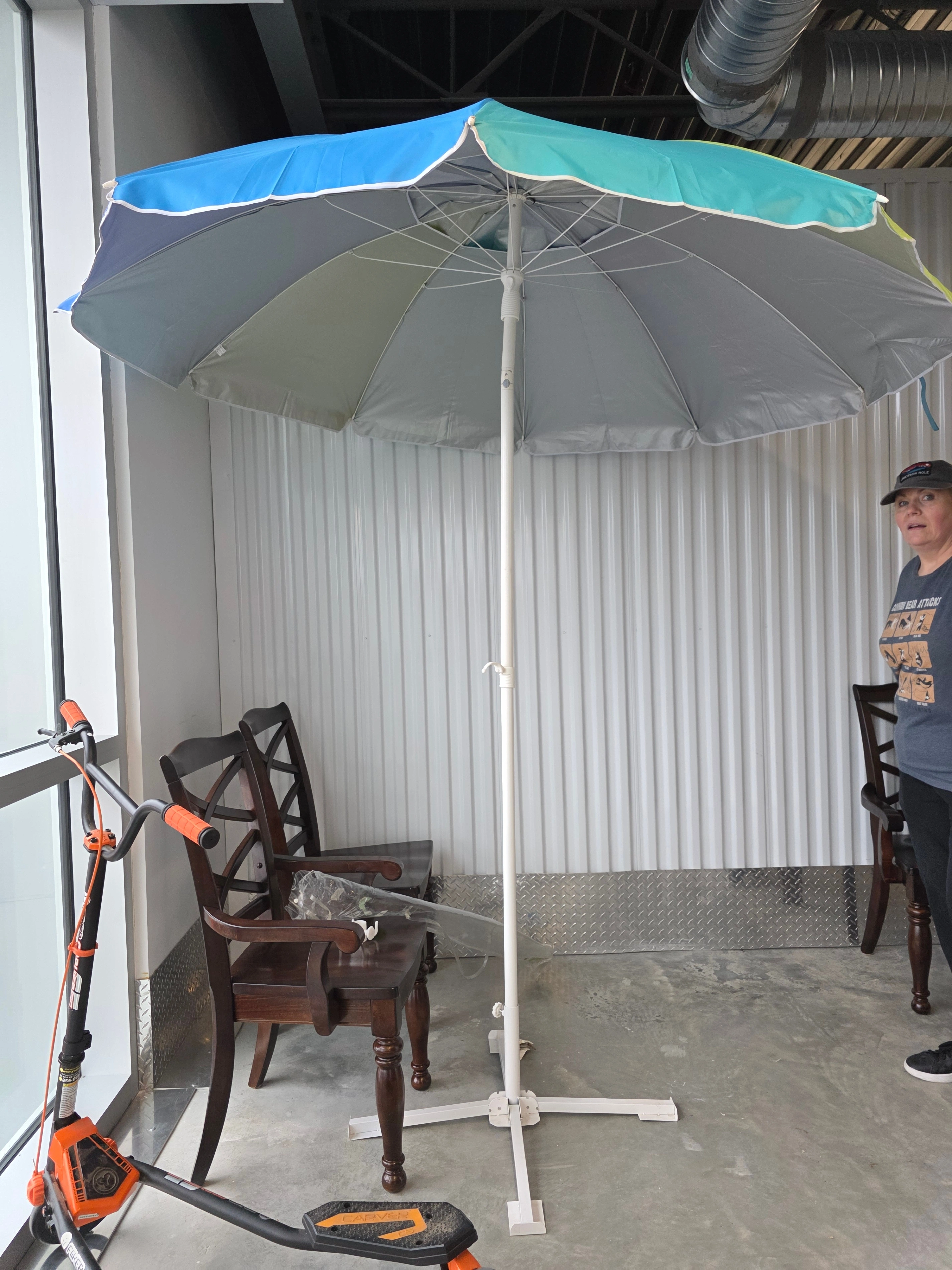 Large umbrella perfect for the beach, picnic or home use. Stands 80 inches high and comes with travel bag and 4 prong stand. Currently stored in a locker (pickup requires at least 24 hours notice) πŸ“ Pickup: Surrey – near King George & 23 Ave πŸ’΅ Payment: eTransfer preferred 🚚 Delivery: Available for a fee – contact for details